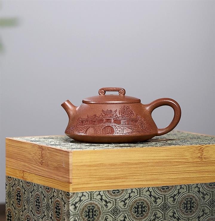 原礦高溫段泥柴燒雙線半月紫砂壺POT5962