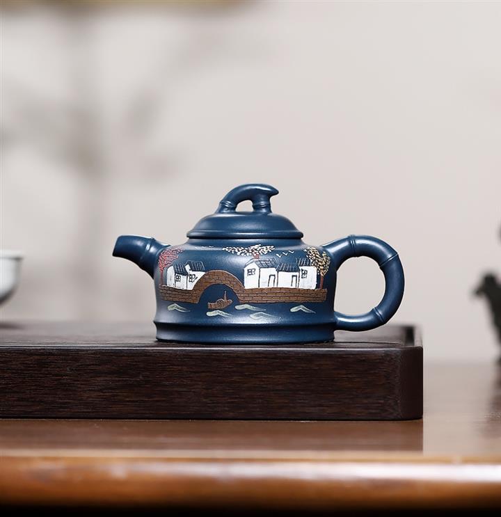 原礦墨綠天靑泥珐琅彩德鍾紫砂壺POT5971