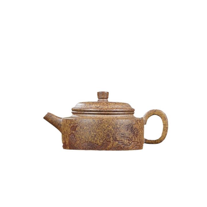 原礦紫朱泥描金水平紫砂壺POT5972