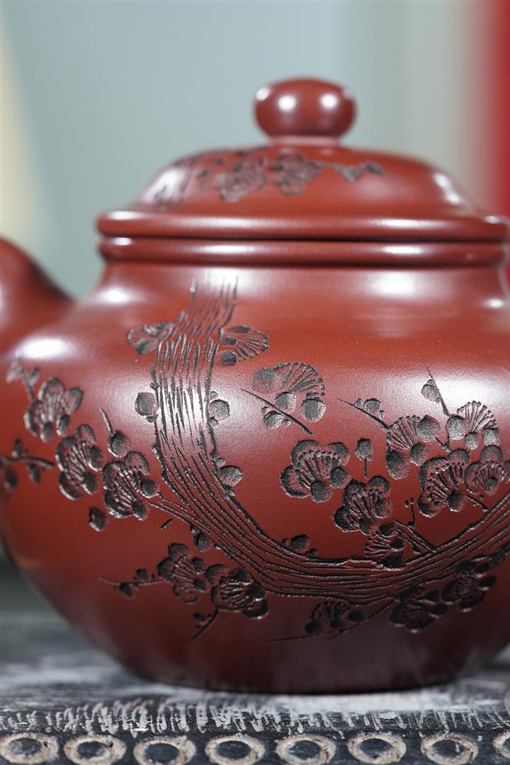 原礦大紅袍刻繪倣古紫砂壺POT5980