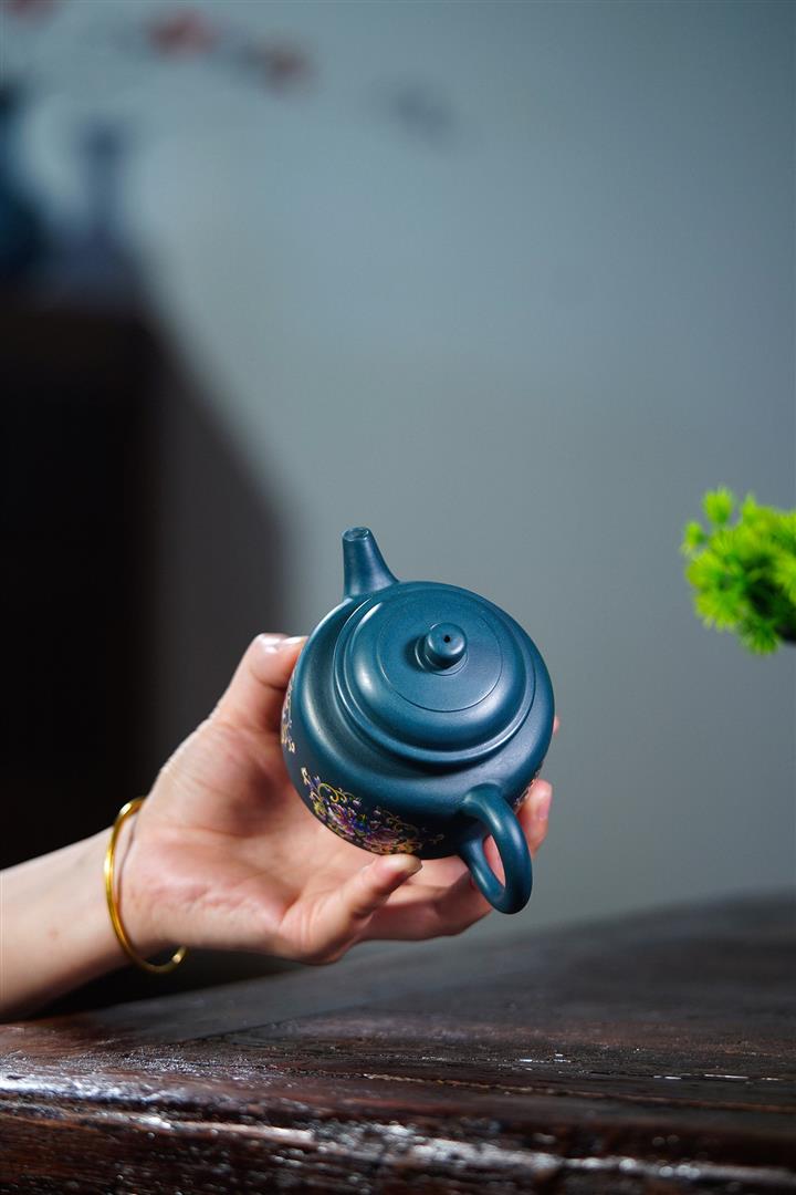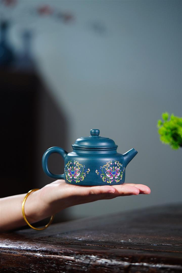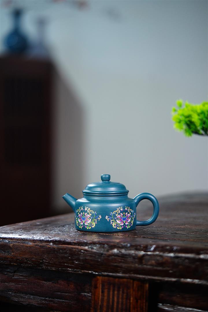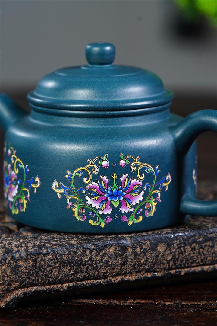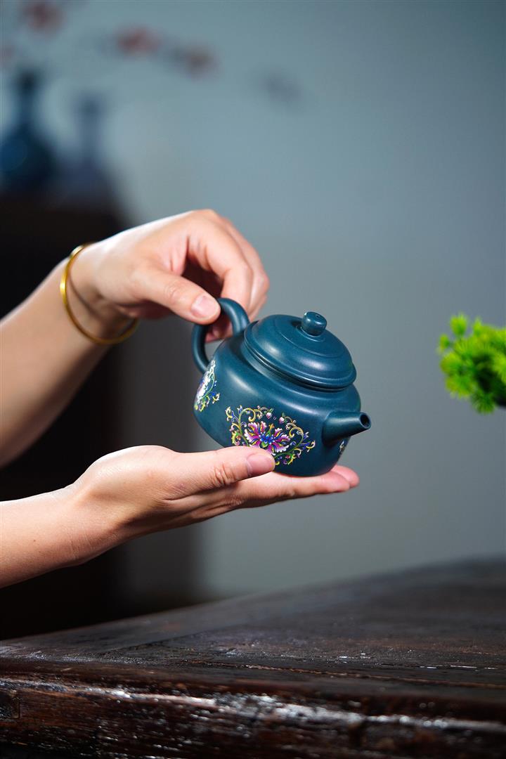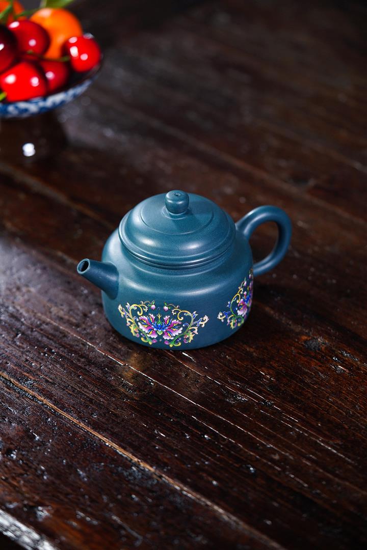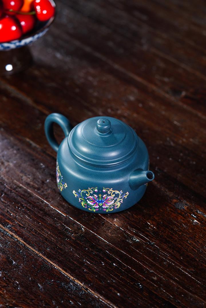 原礦墨綠天靑泥珐琅彩德鍾紫砂壺POT5971