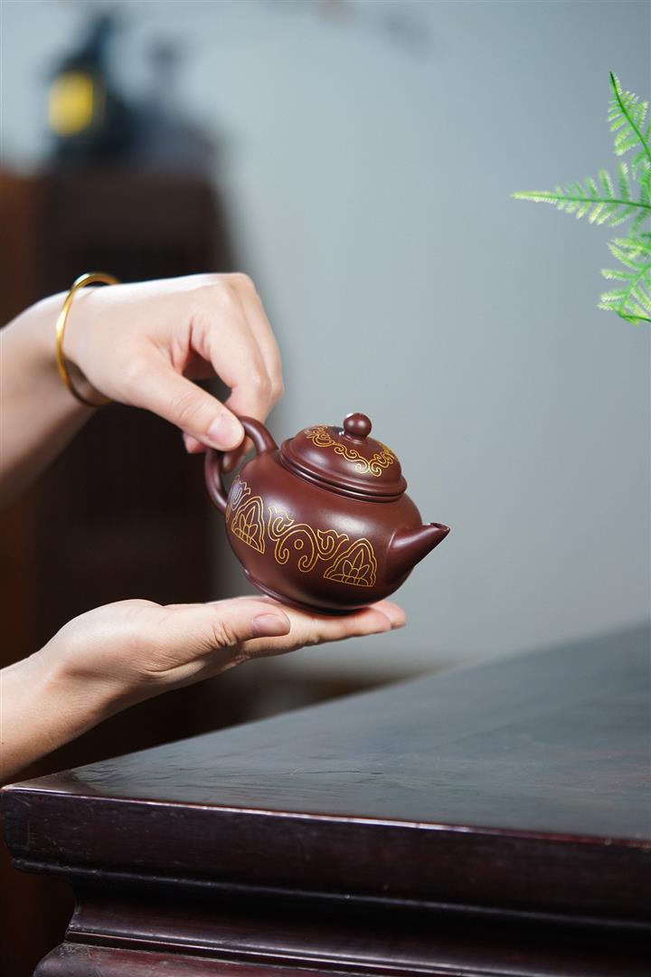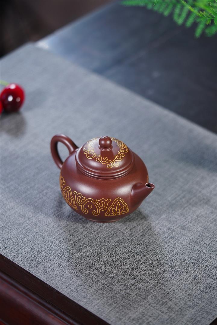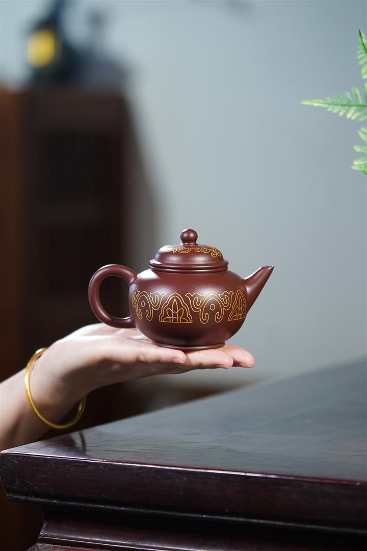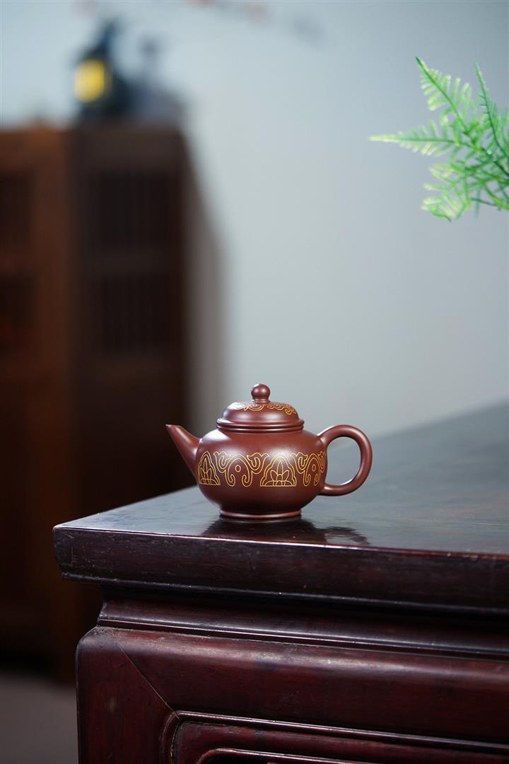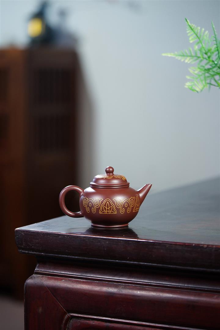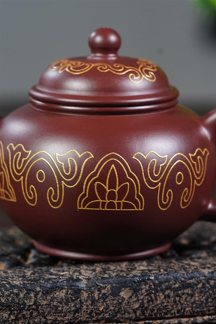 原礦大紅袍刻繪倣古紫砂壺POT5980