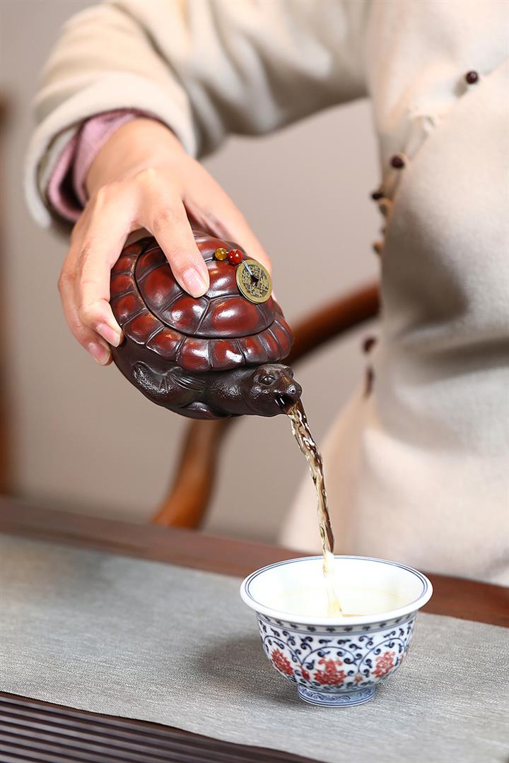 寅·墨綠泥金玉滿堂石瓢紫砂壺POT6024