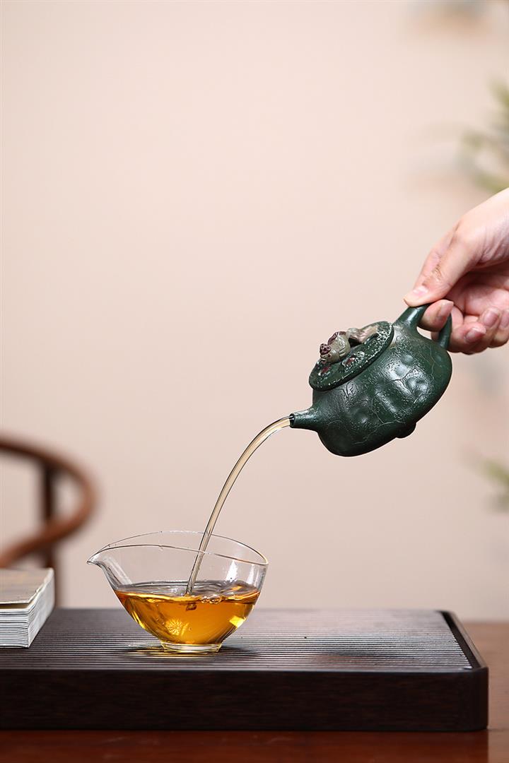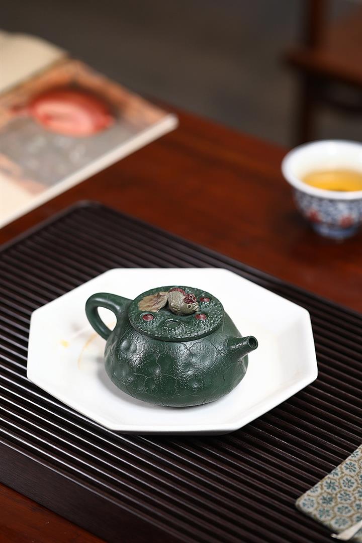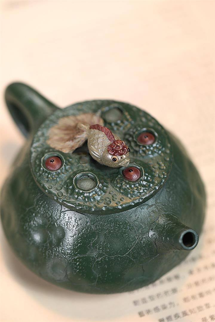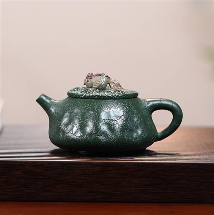 寅·墨綠泥金玉滿堂石瓢紫砂壺POT6024