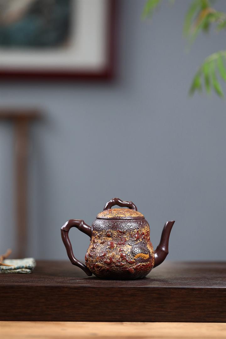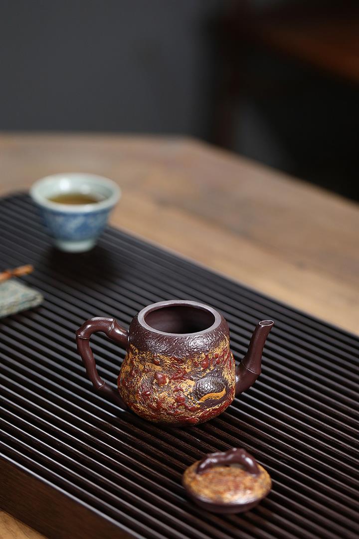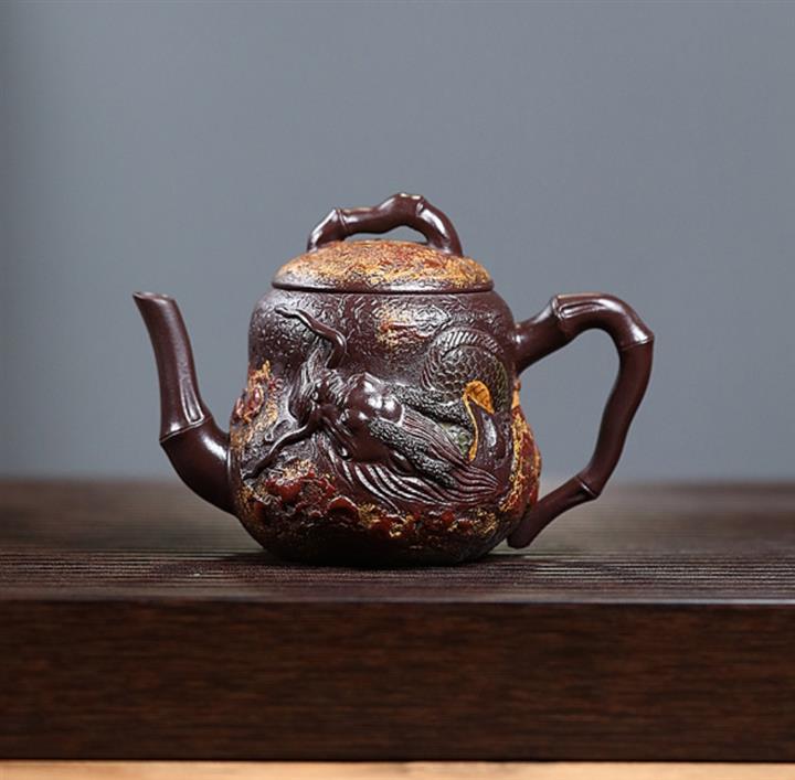 寅·陳腐老紫泥遊龍石竹紫砂壺POT6032