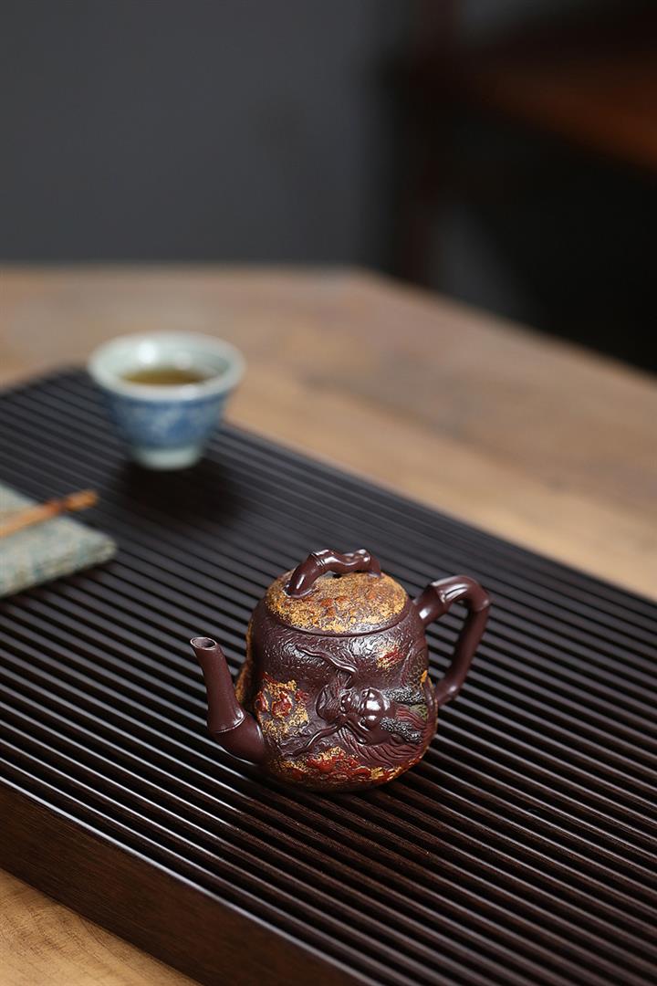 寅·高溫柴燒靈猴紫砂壺POT6035