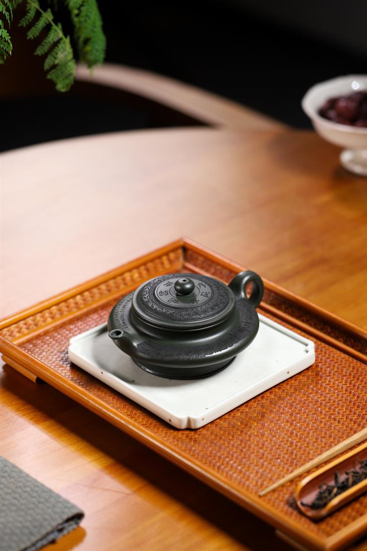 卯·大紅袍絞泥四方龍韻紫砂壺POT6270