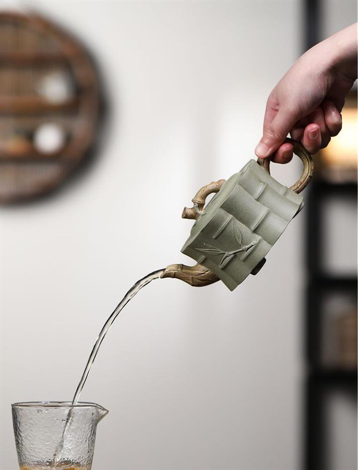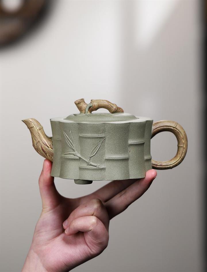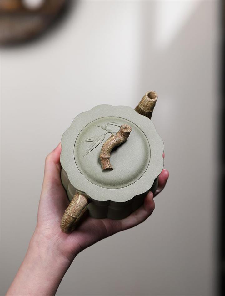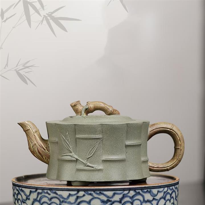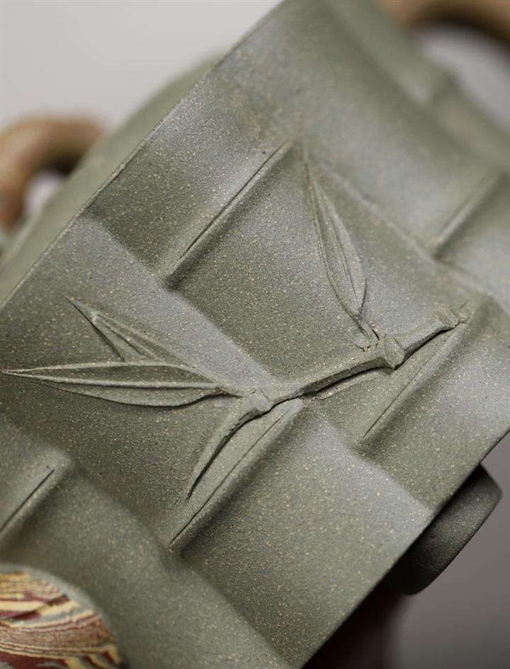 卯·豆青砂絞泥雅竹紫砂壺POT6269