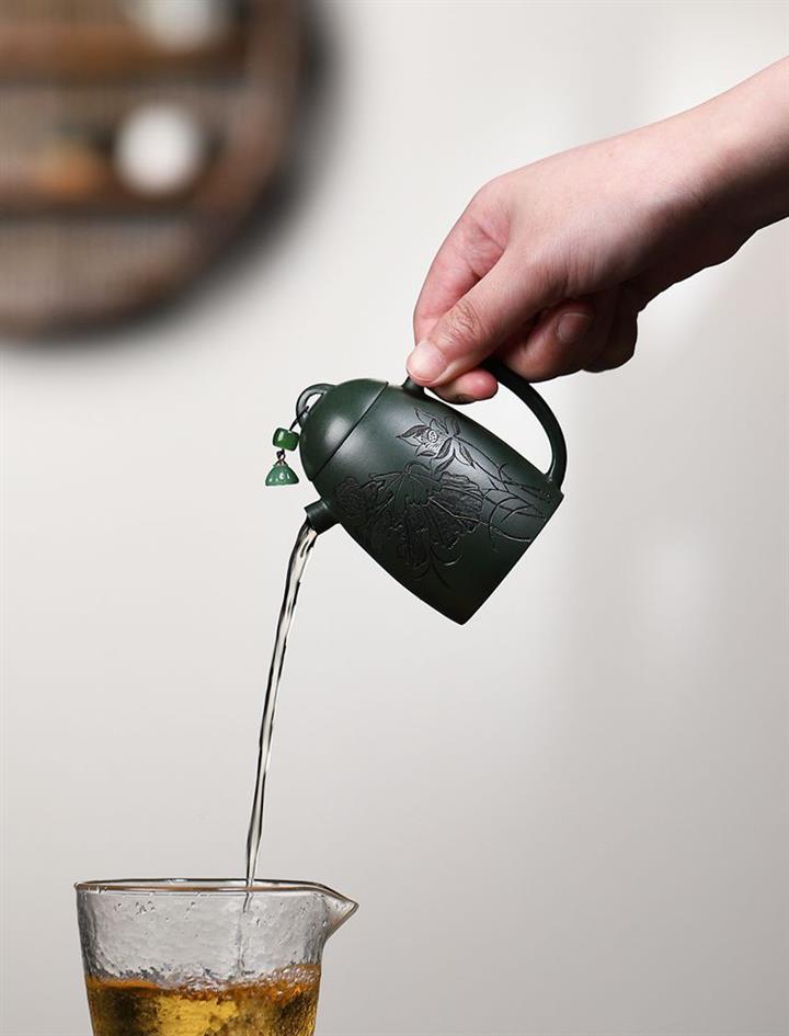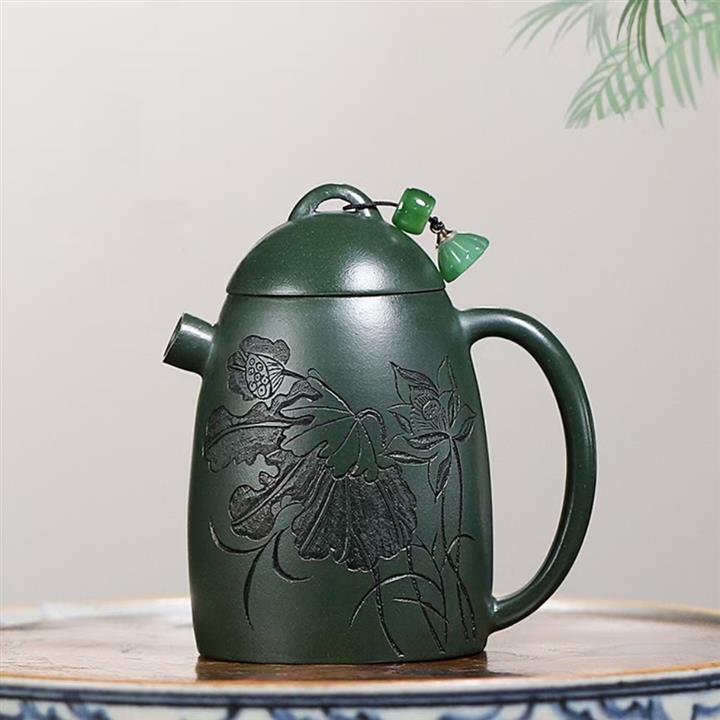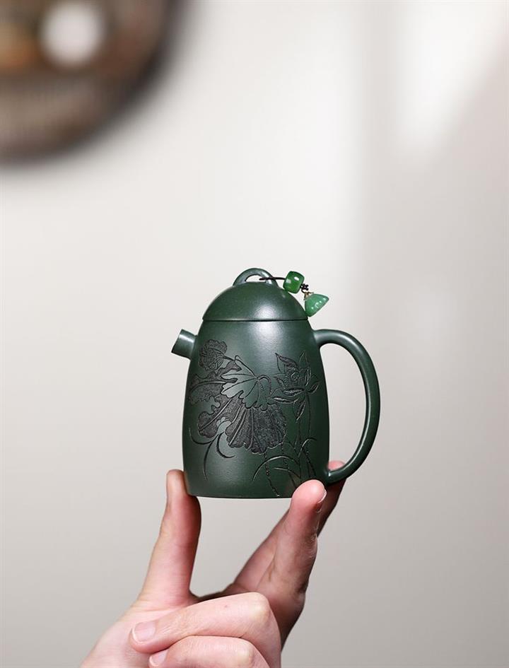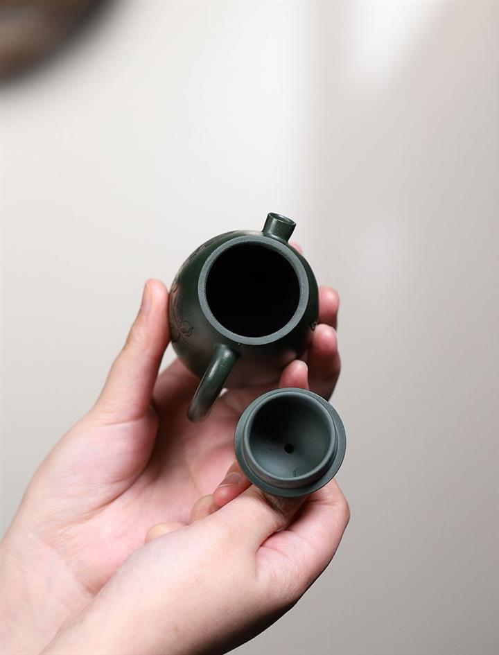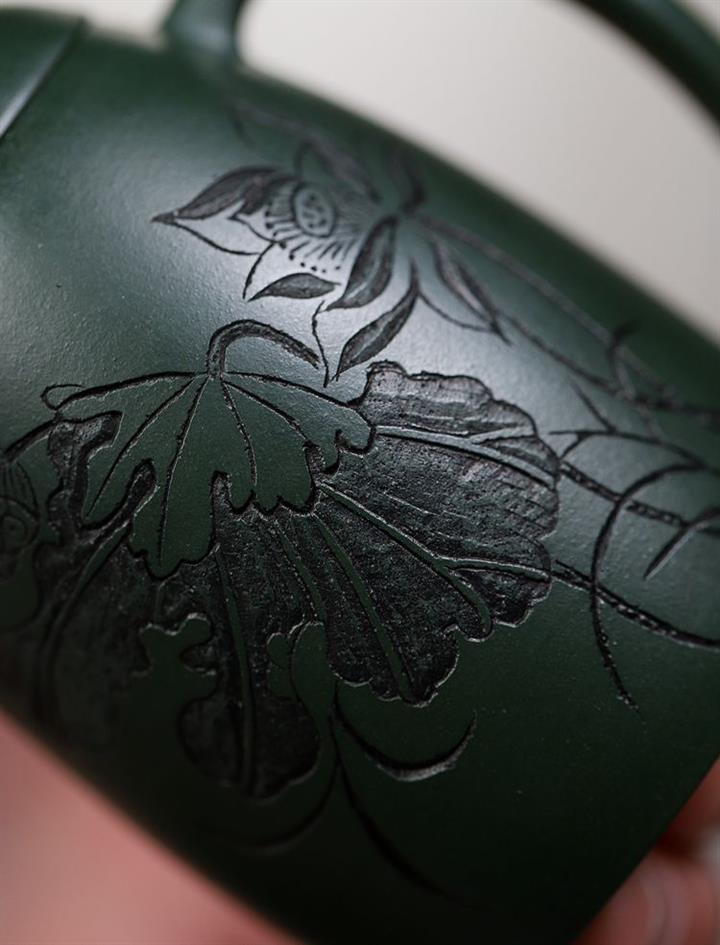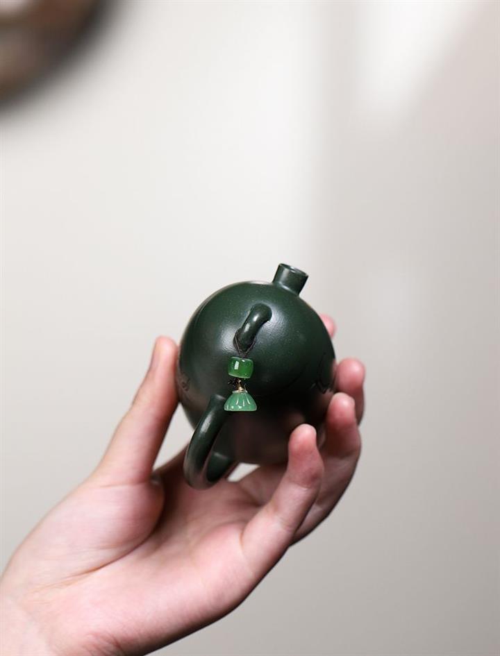 卯·綠泥牡丹扁西施紫砂壺POT6274