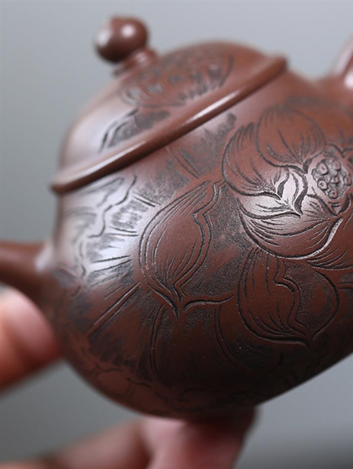 藏品·段泥青蛙蓮子蔣蓉仿古壺