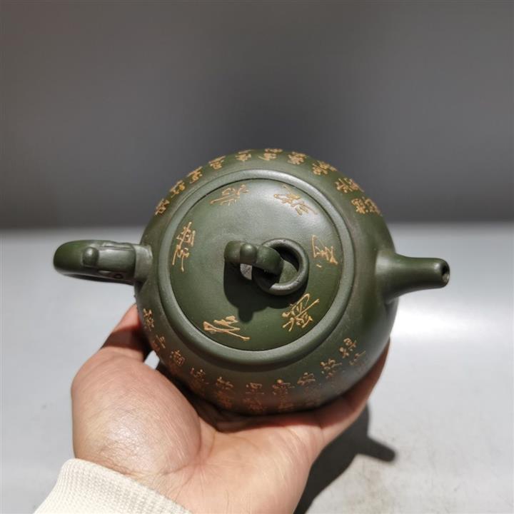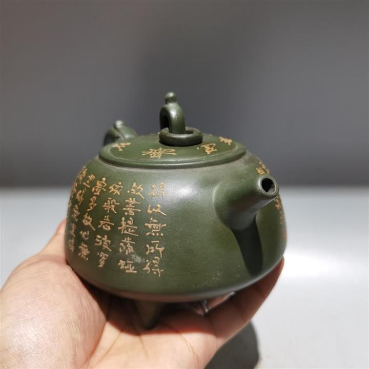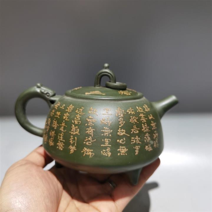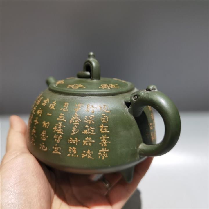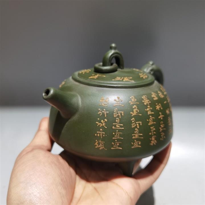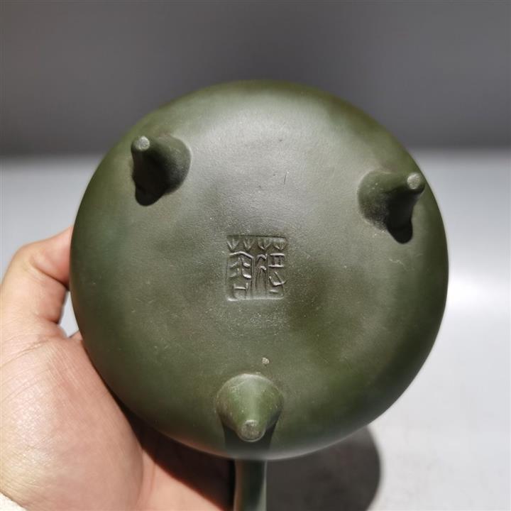 藏品·綠泥三足環龍蔣蓉仿古壺