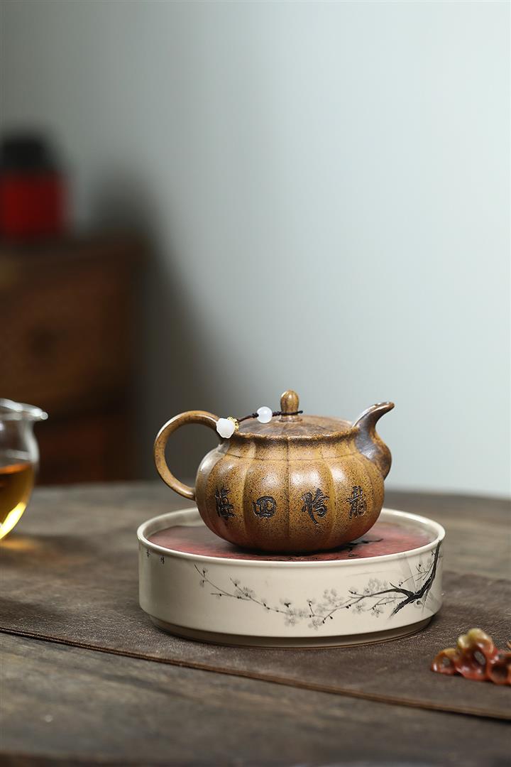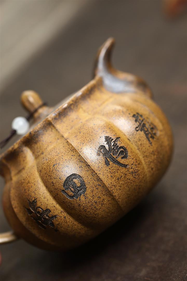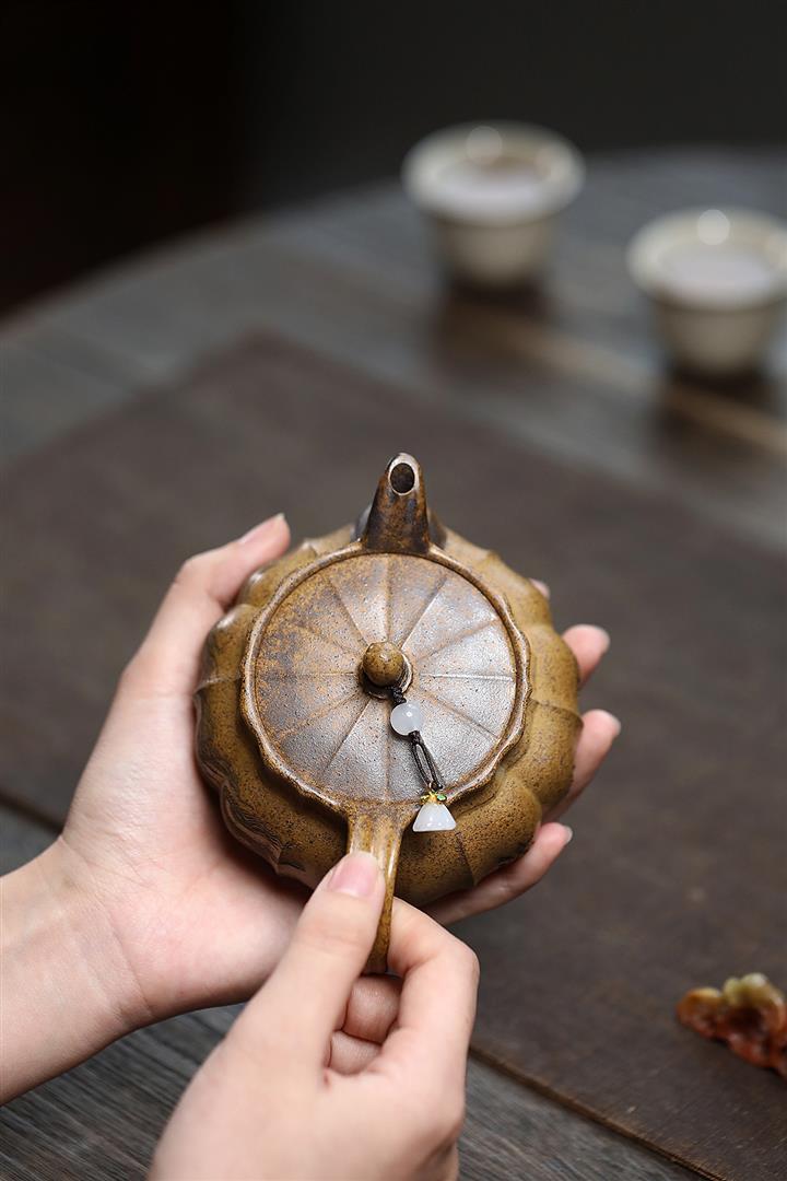 朱泥捂灰金龜換酒手工描金紫砂壺POT6500