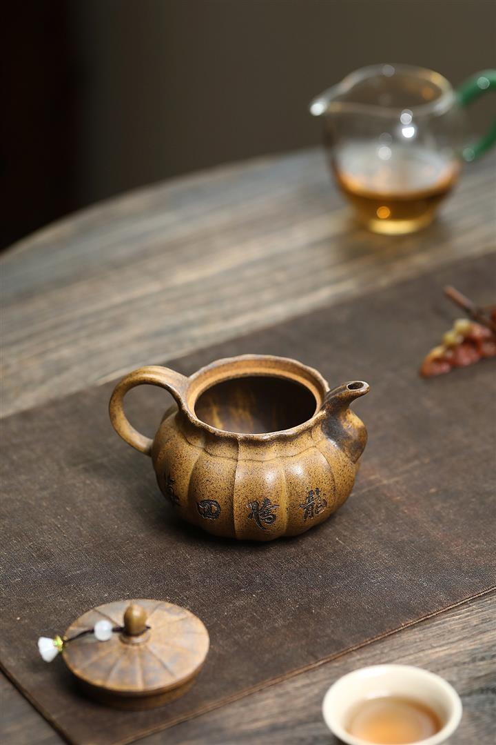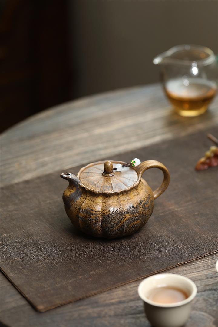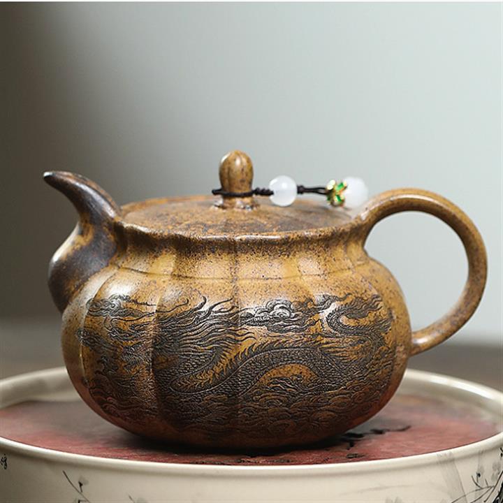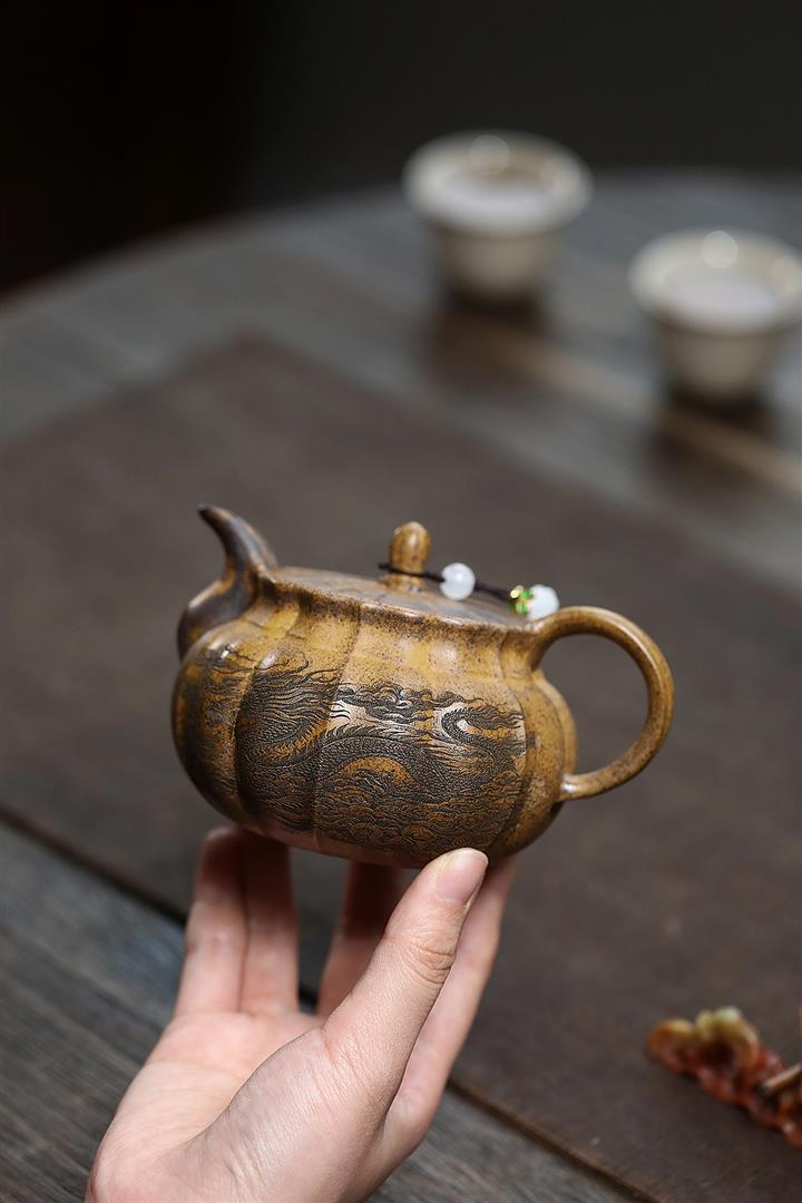 原礦段泥特高溫柴燒手工刻龍騰四海紫砂壺POT6494