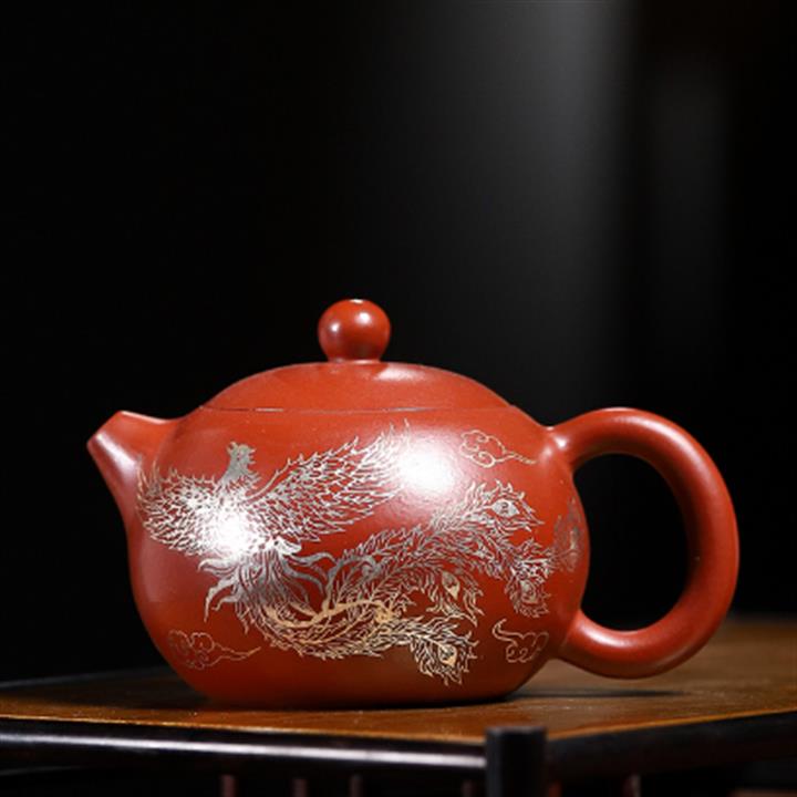 大紅袍還原燒手工描金美人肩紫砂壺POT6