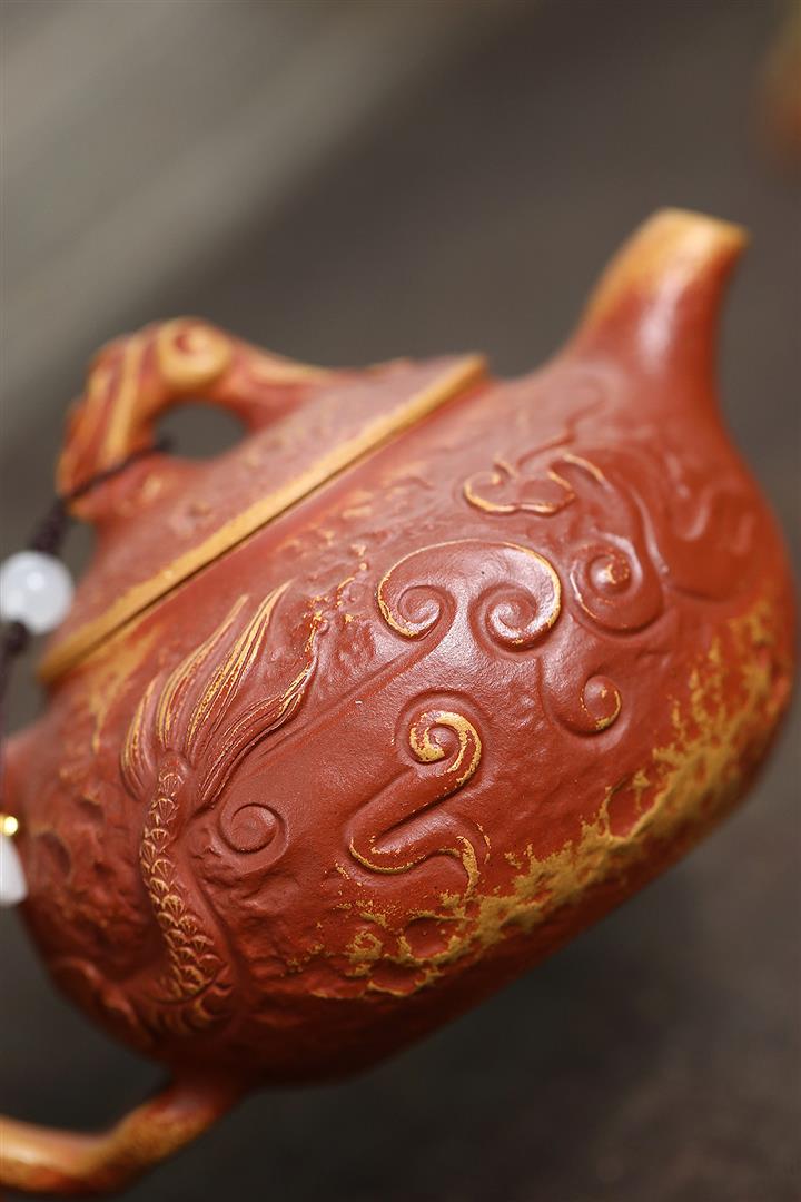 大紅袍還原燒手工描金美人肩紫砂壺POT6