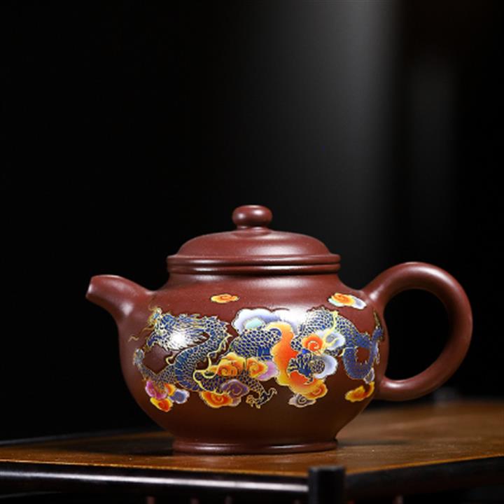 紫朱泥大紅袍手工製作琺瑯彩掇只壺POT6506