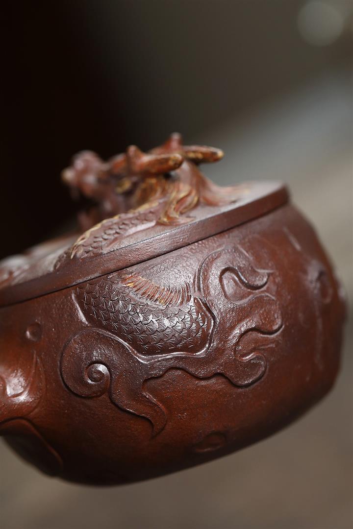 朱泥捂灰金龜換酒手工描金紫砂壺POT6500