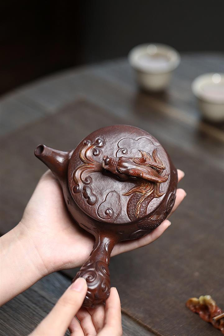 雲霧沈香泥如意唐羽手工側把壺POT6503