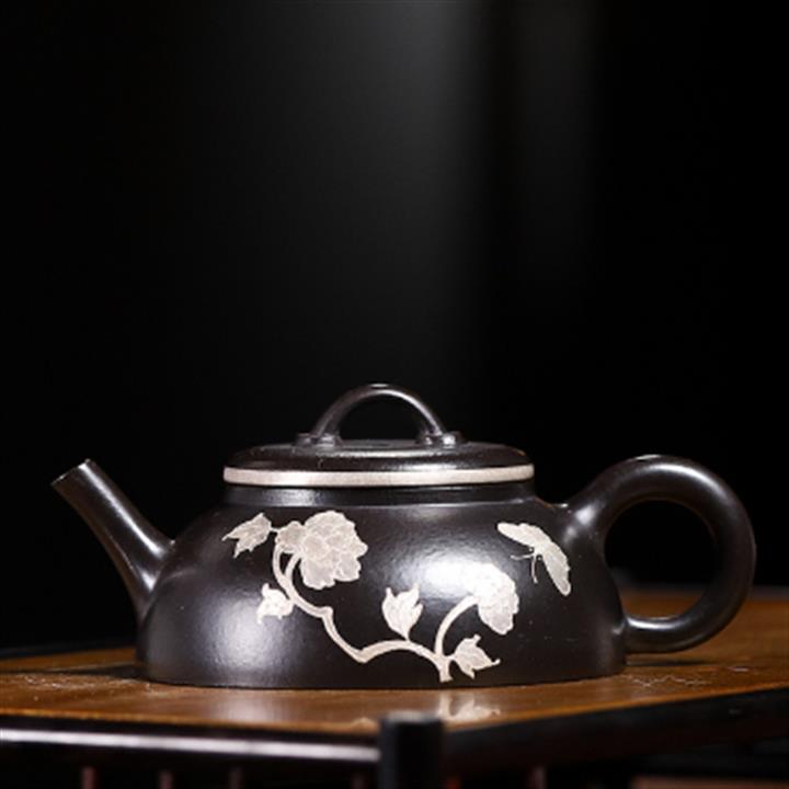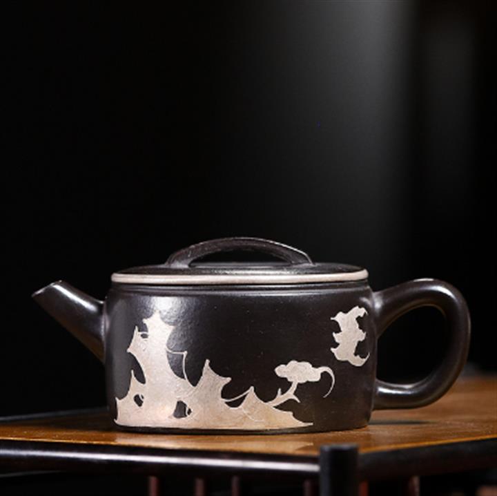 大紅袍還原燒手工半月描銀紫砂壺POT6508