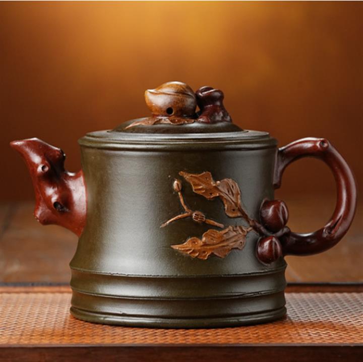 綠泥老款雙色手工竹段壽桃壺POT6511