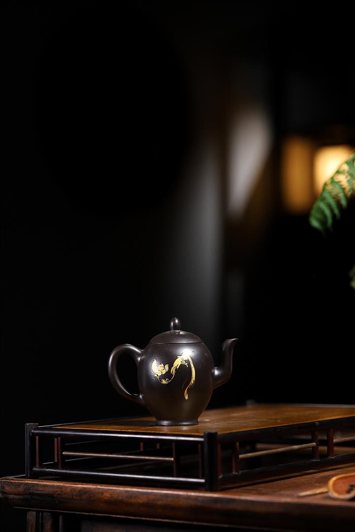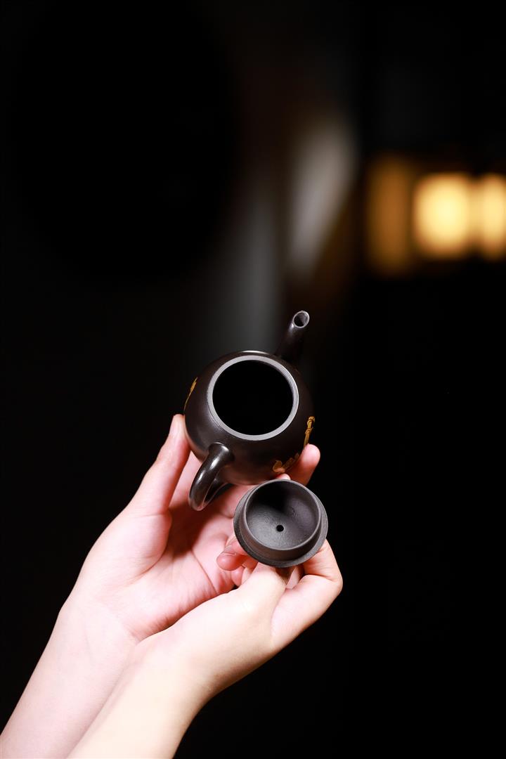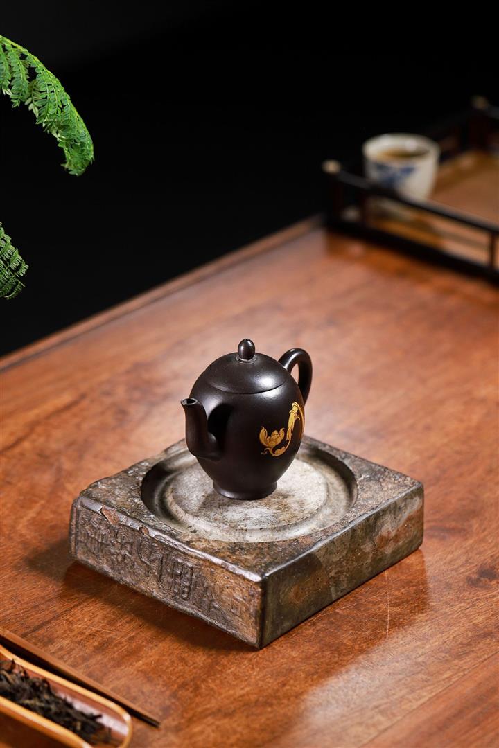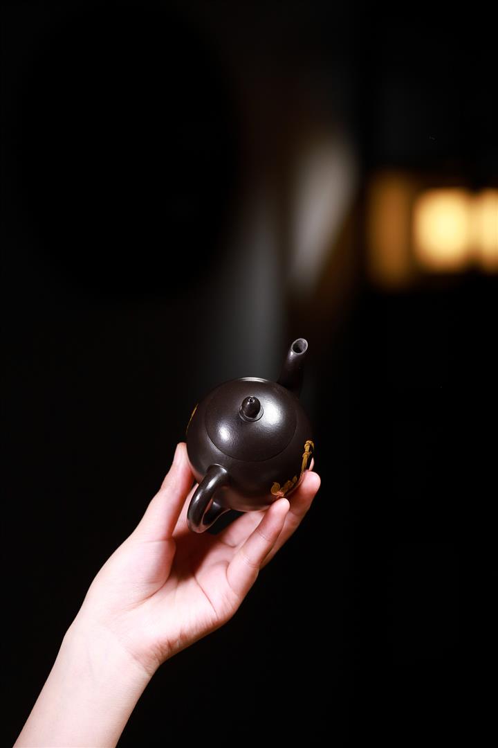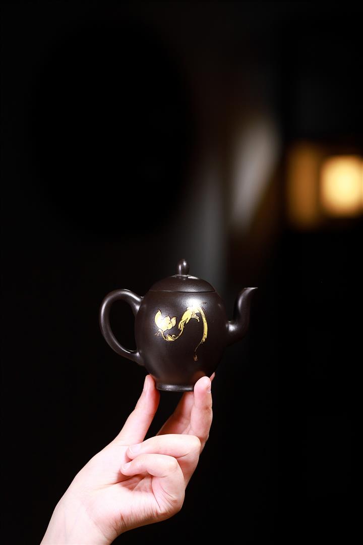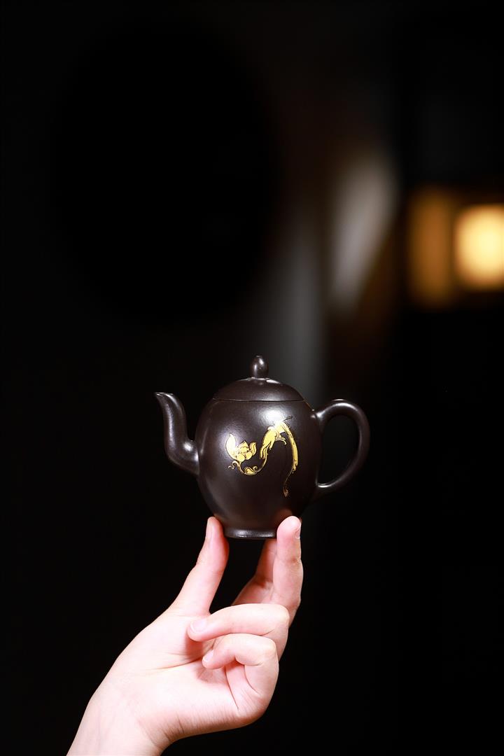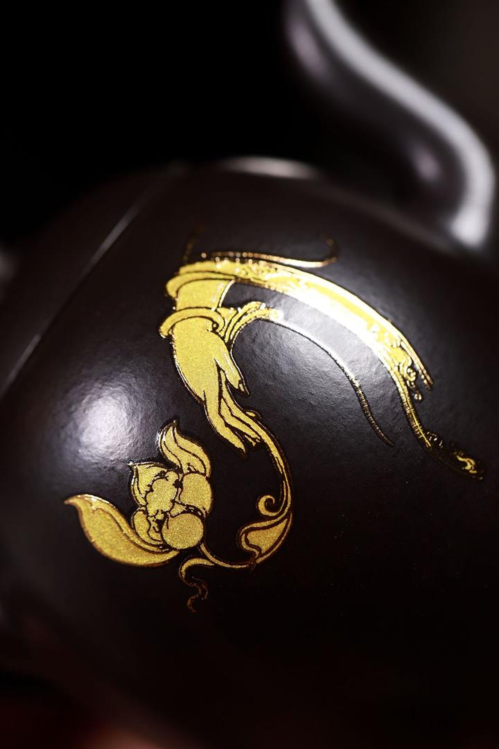大紅袍還原燒手工描金美人肩紫砂壺POT6