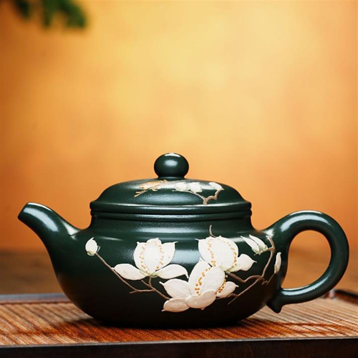 原礦綠泥仿古手繪玉蘭花紫砂壺POT6513