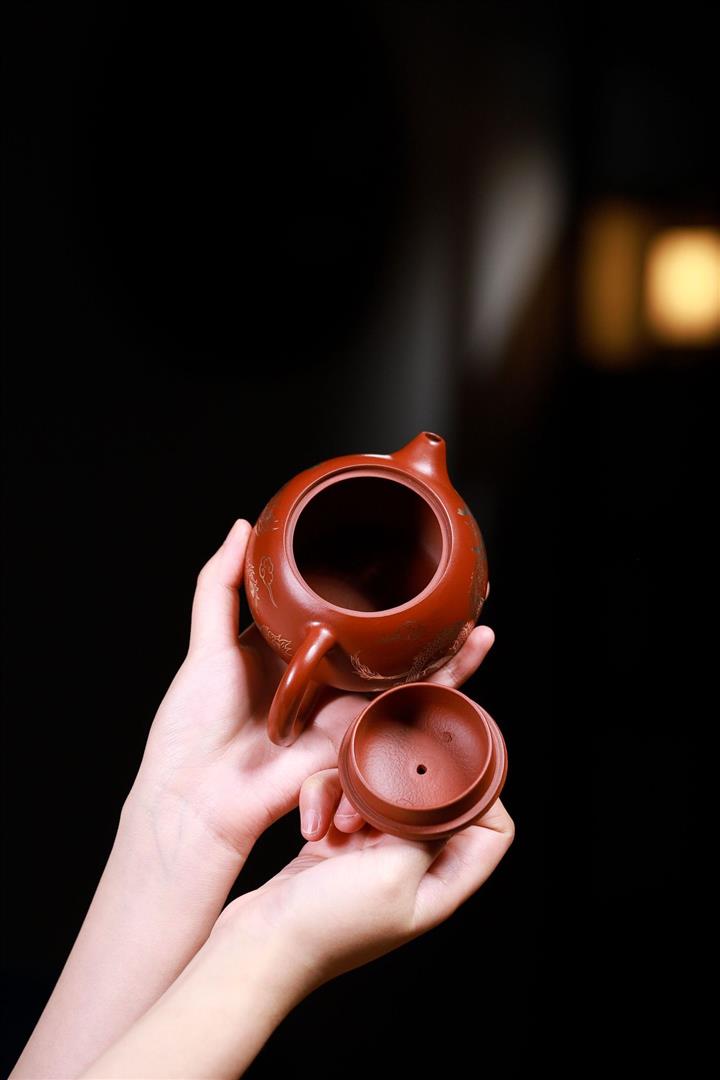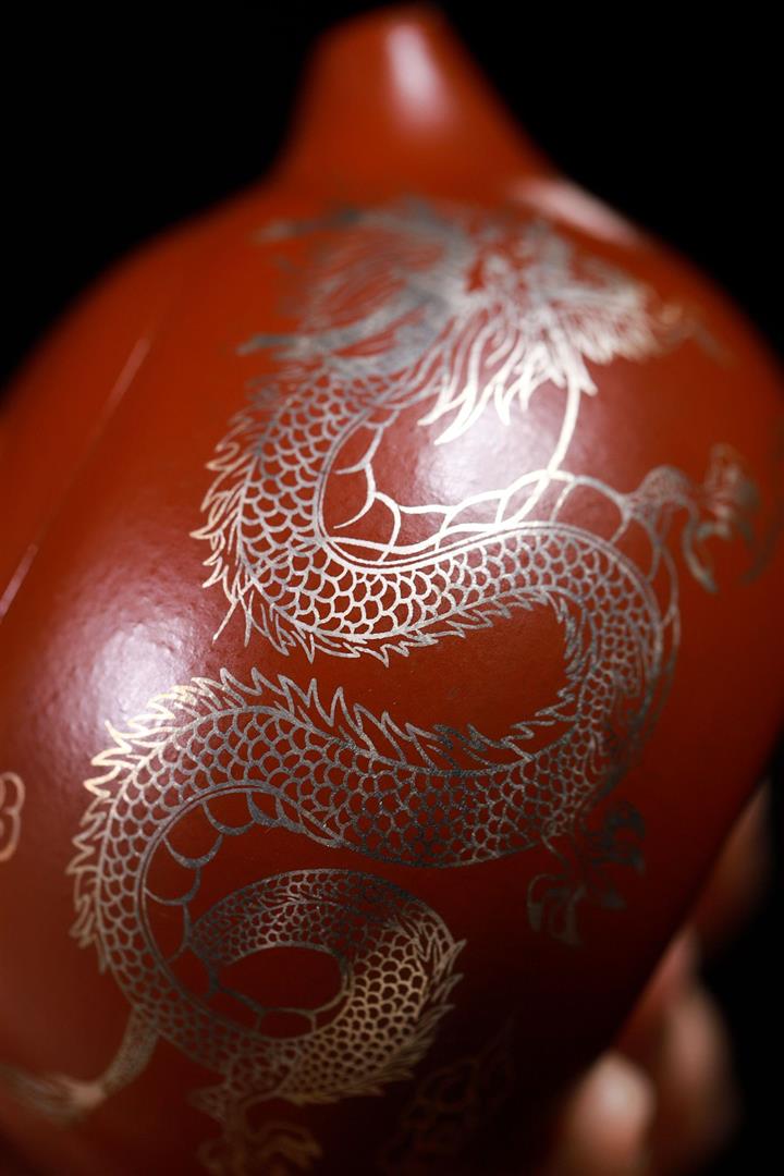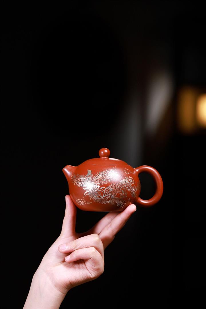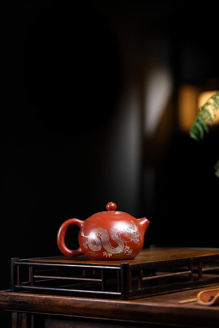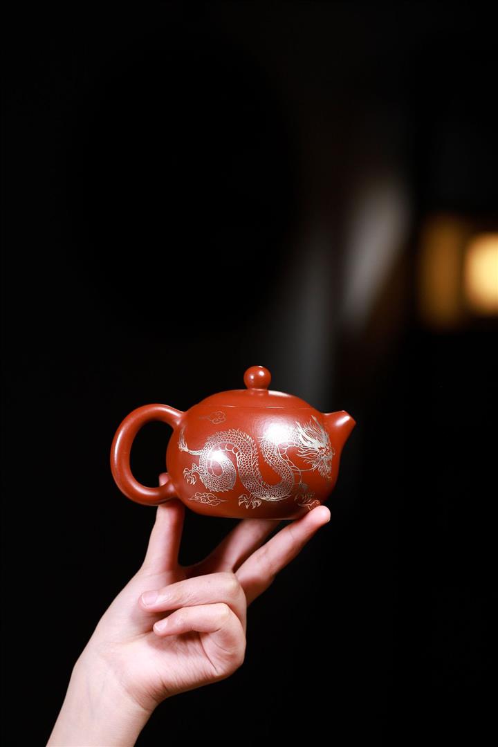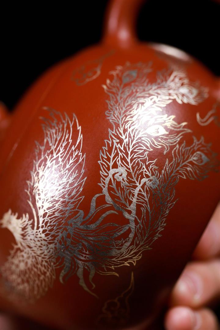 大紅袍還原燒手工半月描銀紫砂壺POT6508