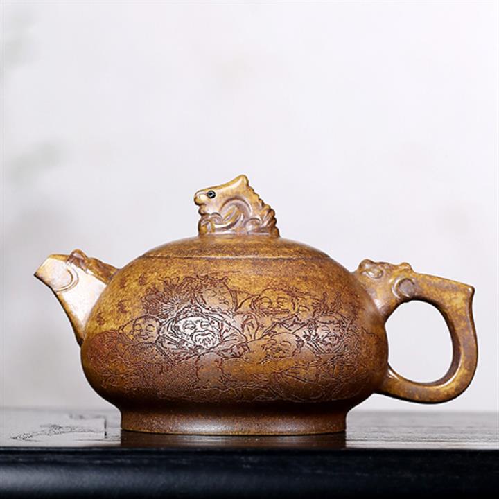 原礦高溫段泥手工刻繪盤龍壺POT6515
