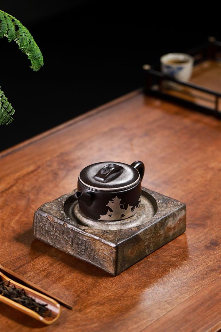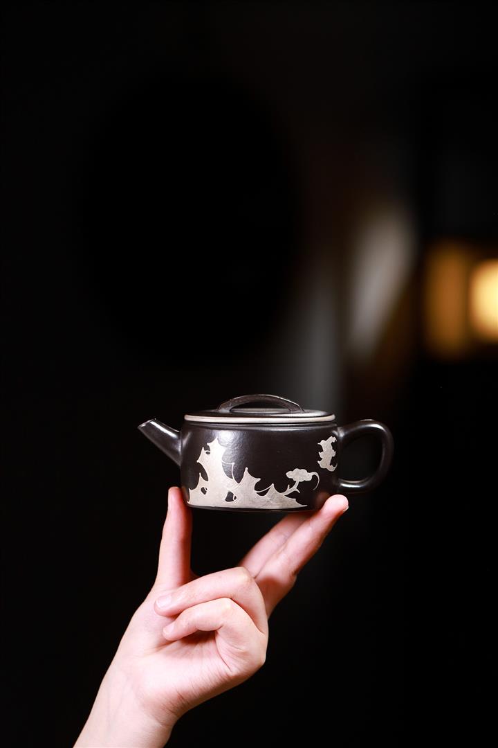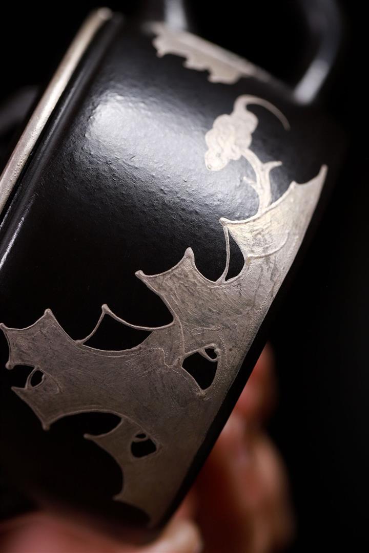 大紅袍還原燒手工半月描銀紫砂壺POT6508