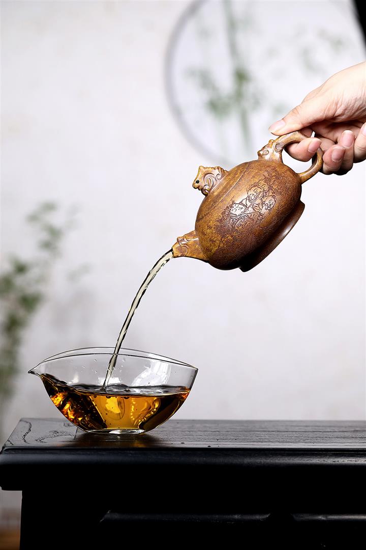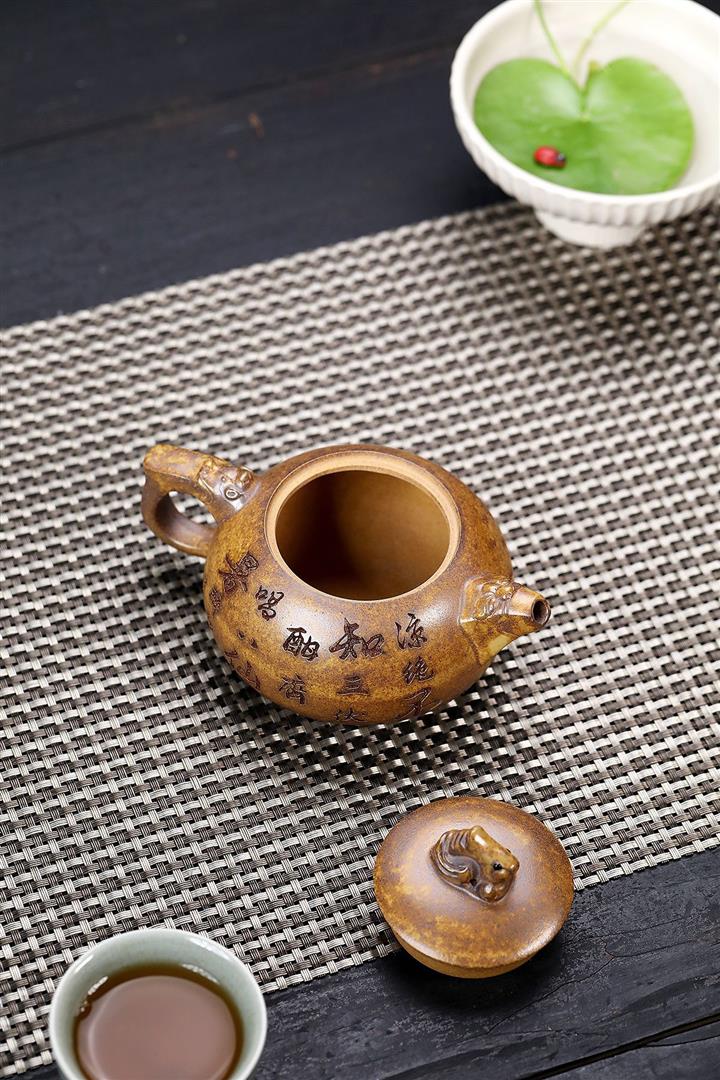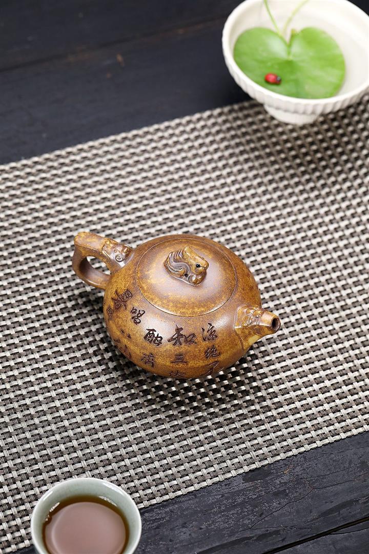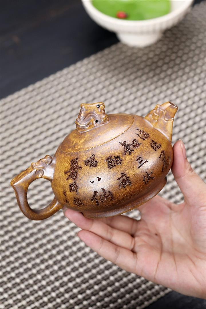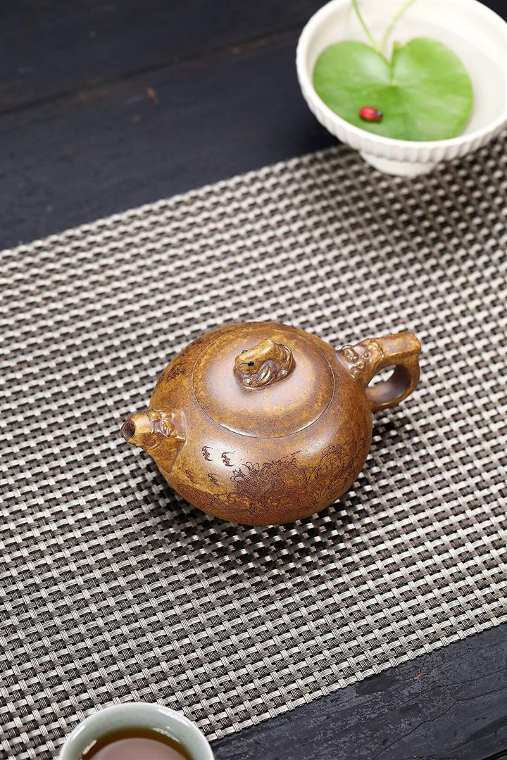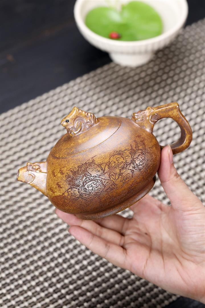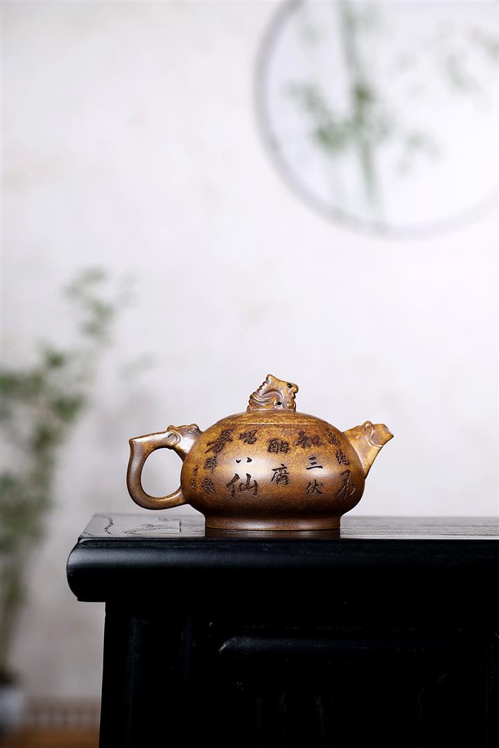 原礦紫泥手工刻繪瑞獸紫砂壺POT6522
