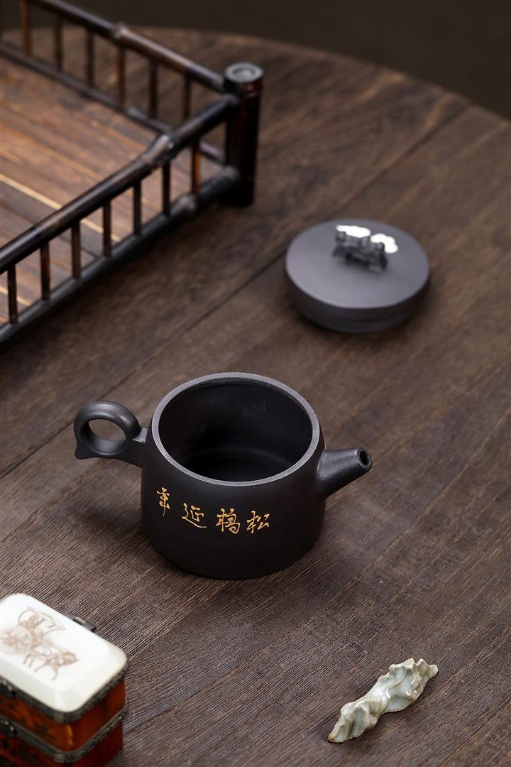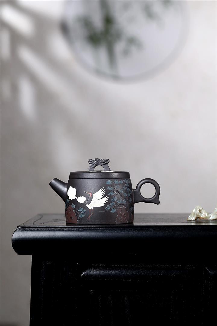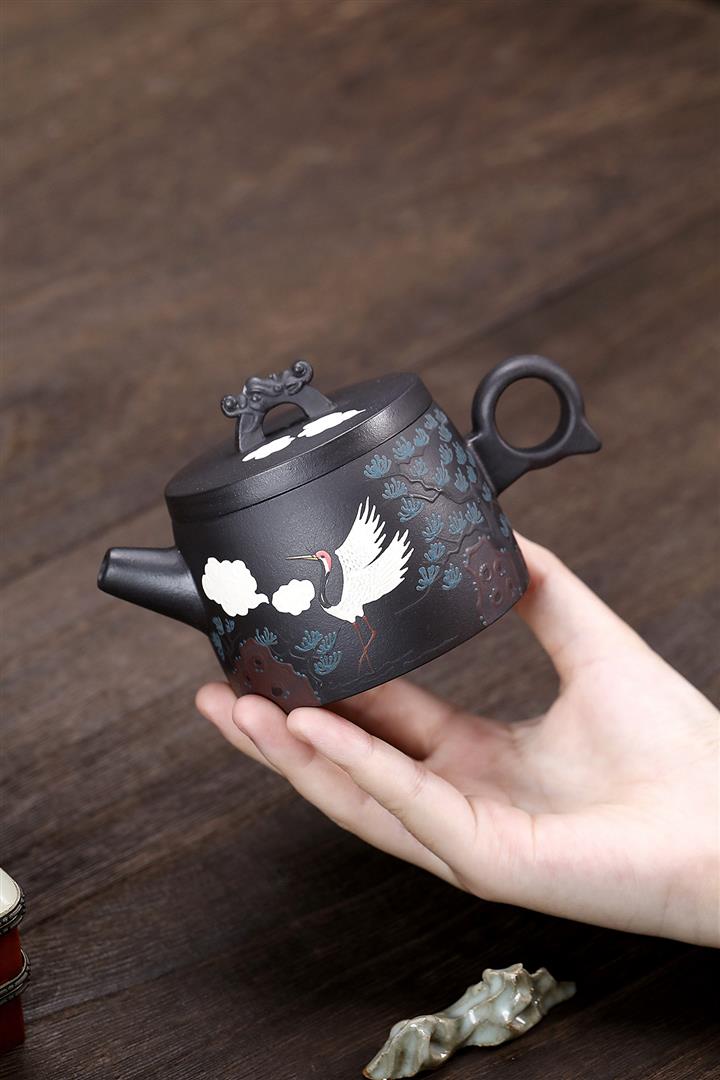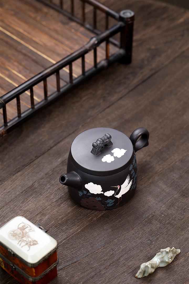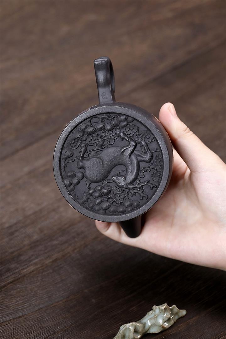 原礦黑金剛手工松鶴延年紫砂壺POT6528