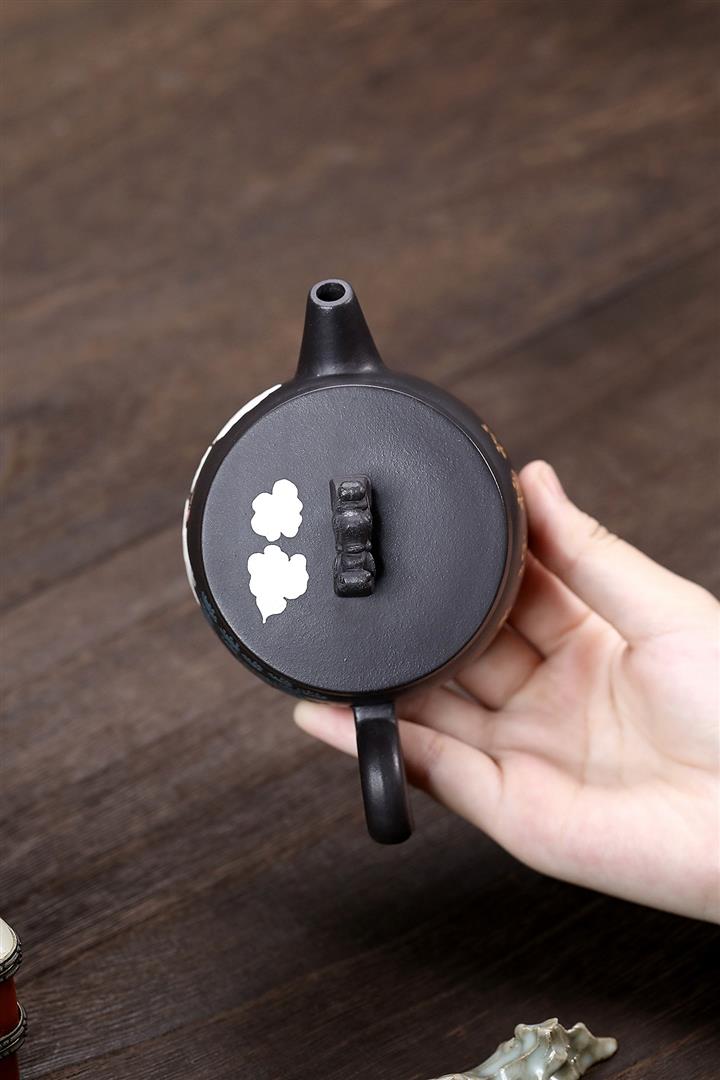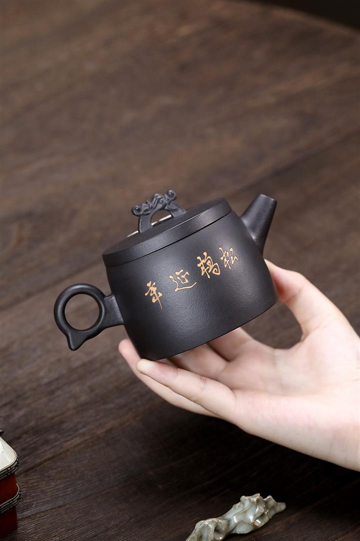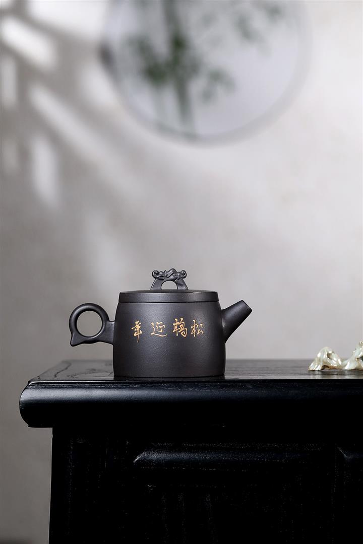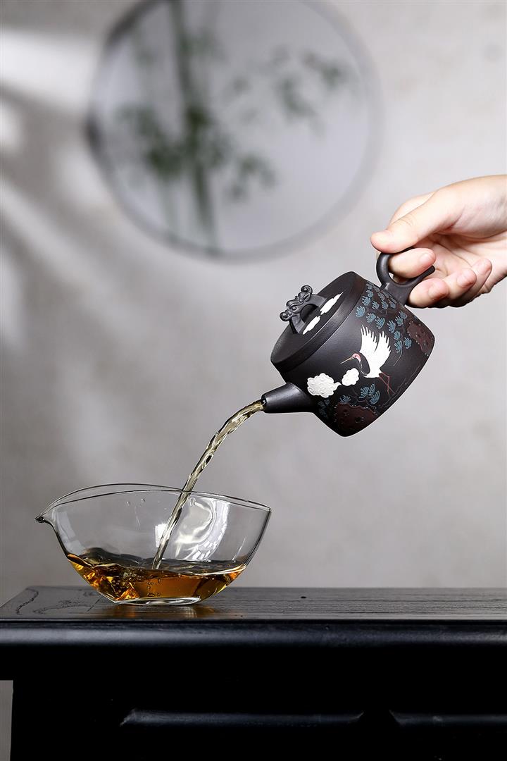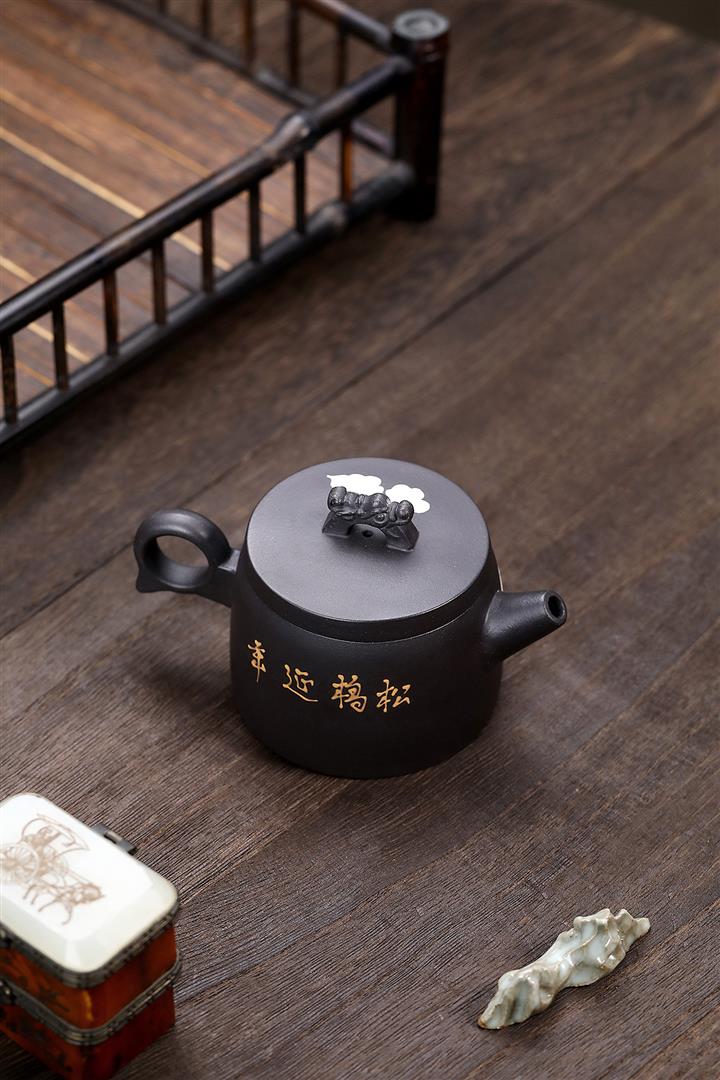 原礦黑金剛手工松鶴延年紫砂壺POT6528