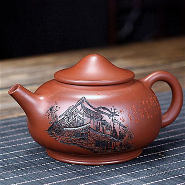 原礦龍血砂手工刻繪無欲則剛紫砂壺POT6530