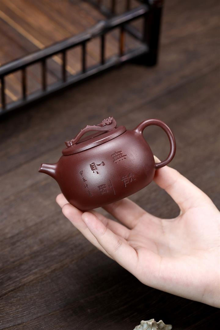 原礦龍血砂手工刻繪無欲則剛紫砂壺POT6530
