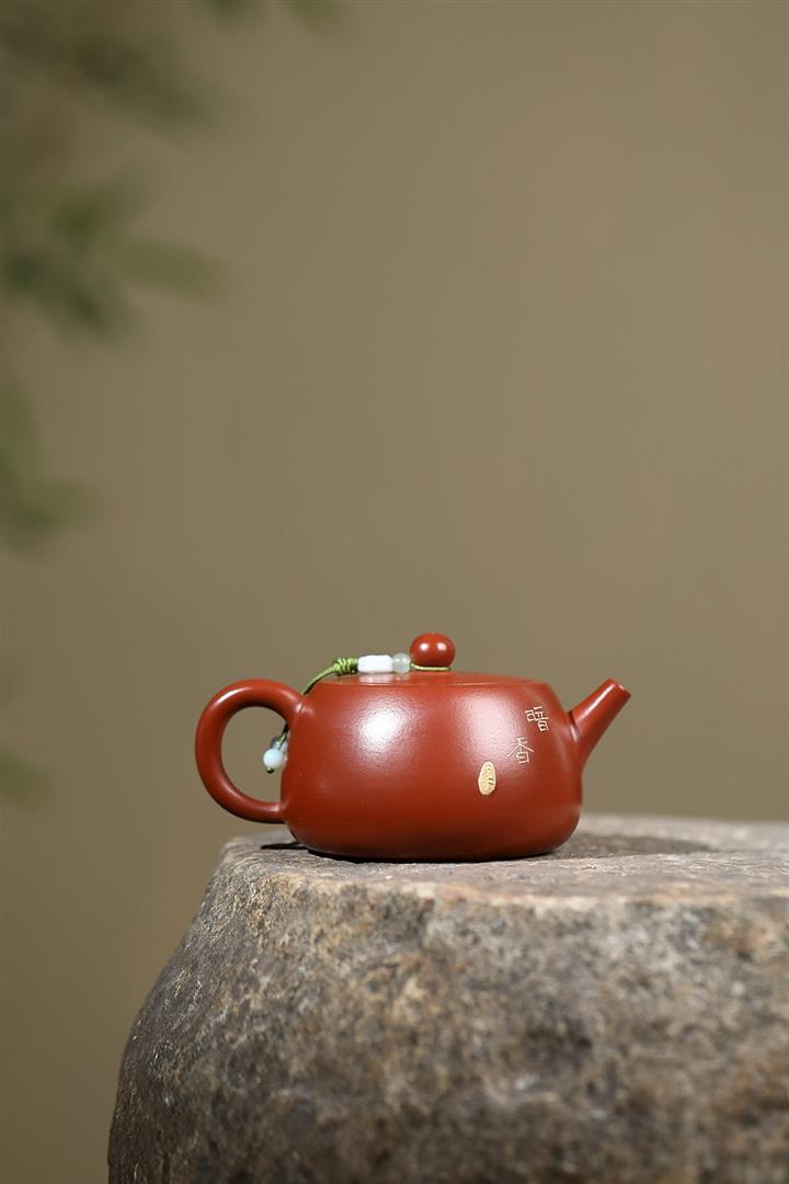 原礦赤金朱泥太湖石手工竹影漢瓦茶壺POT6566