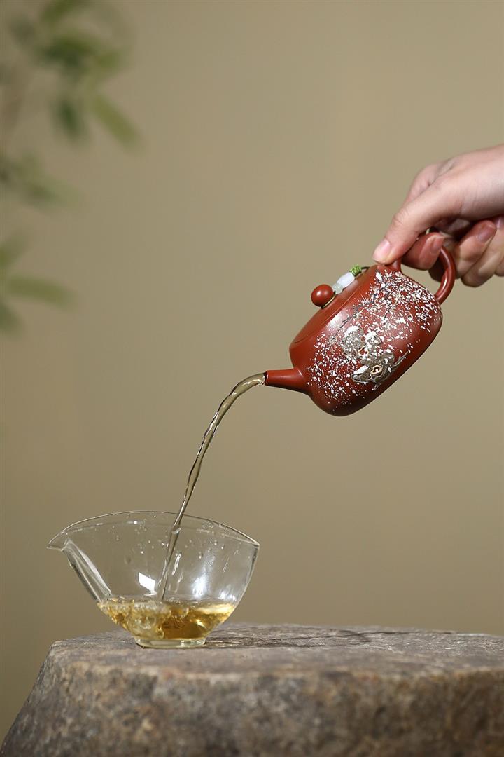 紫砂使用越久,壺身色澤越發光亮照人,氣韻溫雅。紫砂壺長久使用器身會因拂拭摩擦,變得越發溫潤光澤!