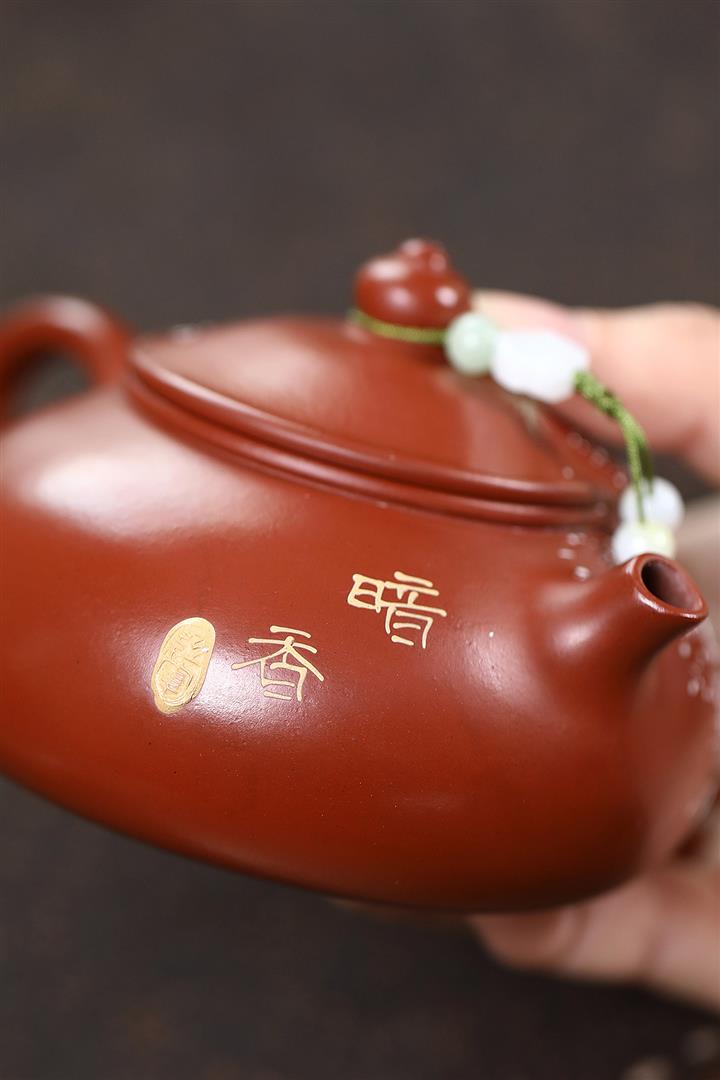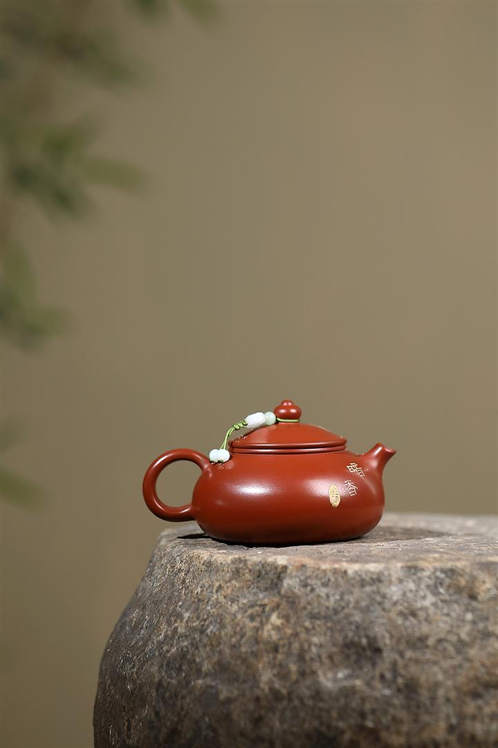 原礦赤金朱泥太湖石手工竹影漢瓦茶壺POT6566
