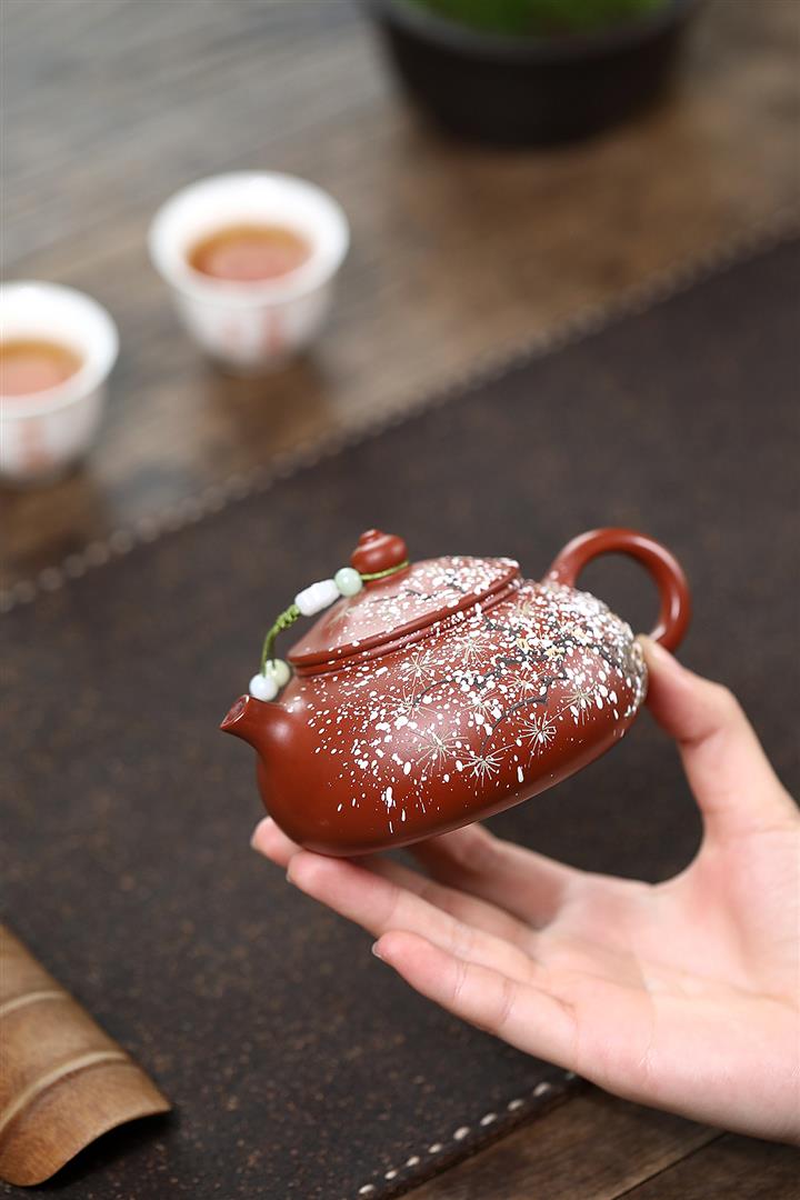 紫砂使用越久,壺身色澤越發光亮照人,氣韻溫雅。紫砂壺長久使用器身會因拂拭摩擦,變得越發溫潤光澤!