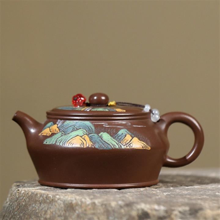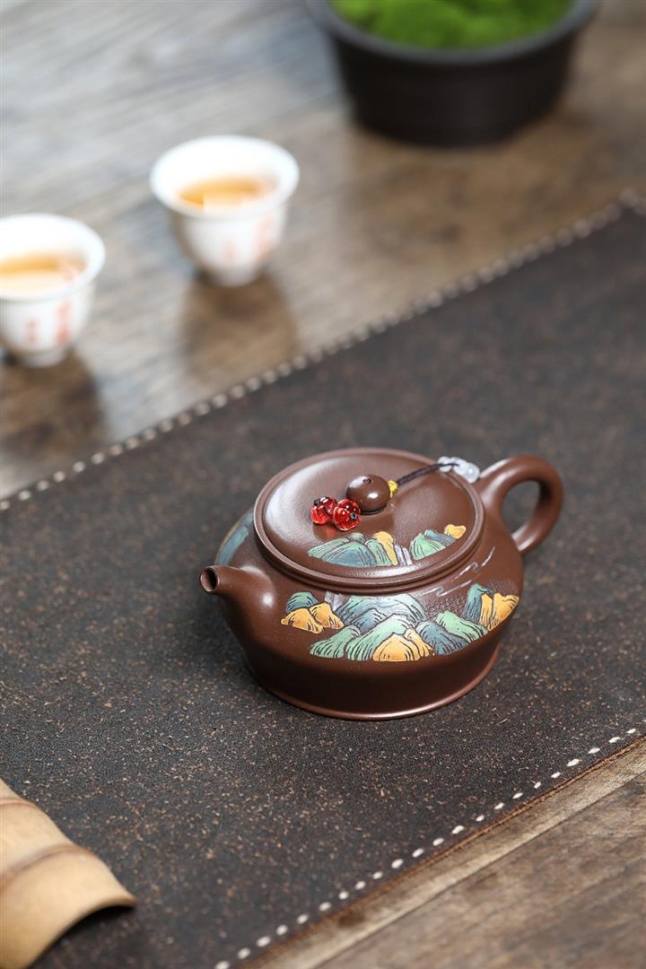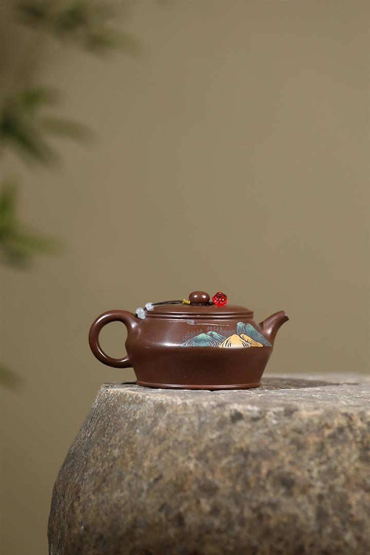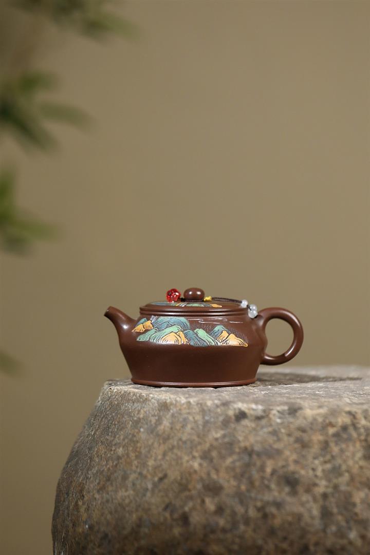 原礦老紫泥手工彩繪曼殊茶壺POT6565