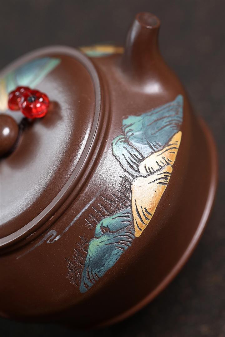 【品名】彩繪曼珠(附:壺繩 高檔禮盒 作者收藏證書 茶巾)