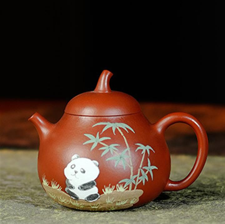 原礦朱泥純手工彩繪熊貓茄瓜壺POT6577