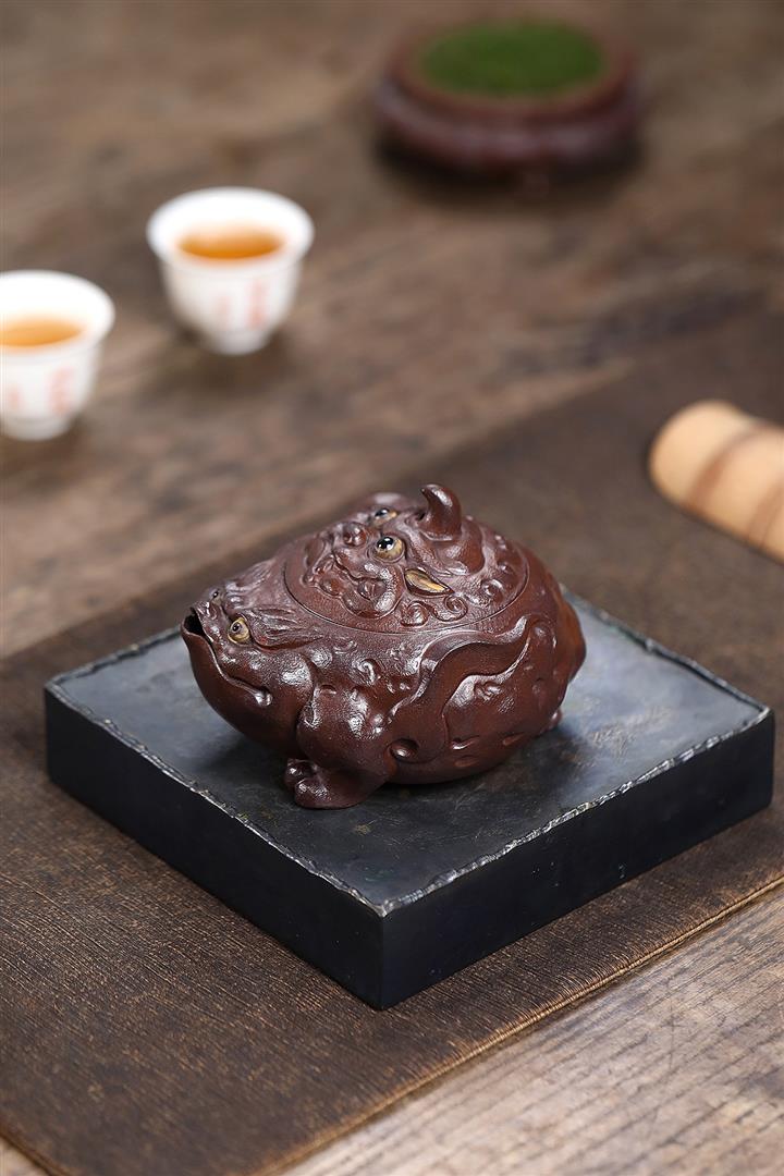 【品名】金蟾手抓壺(附:壺繩 高檔禮盒 作者收藏證書 茶巾)