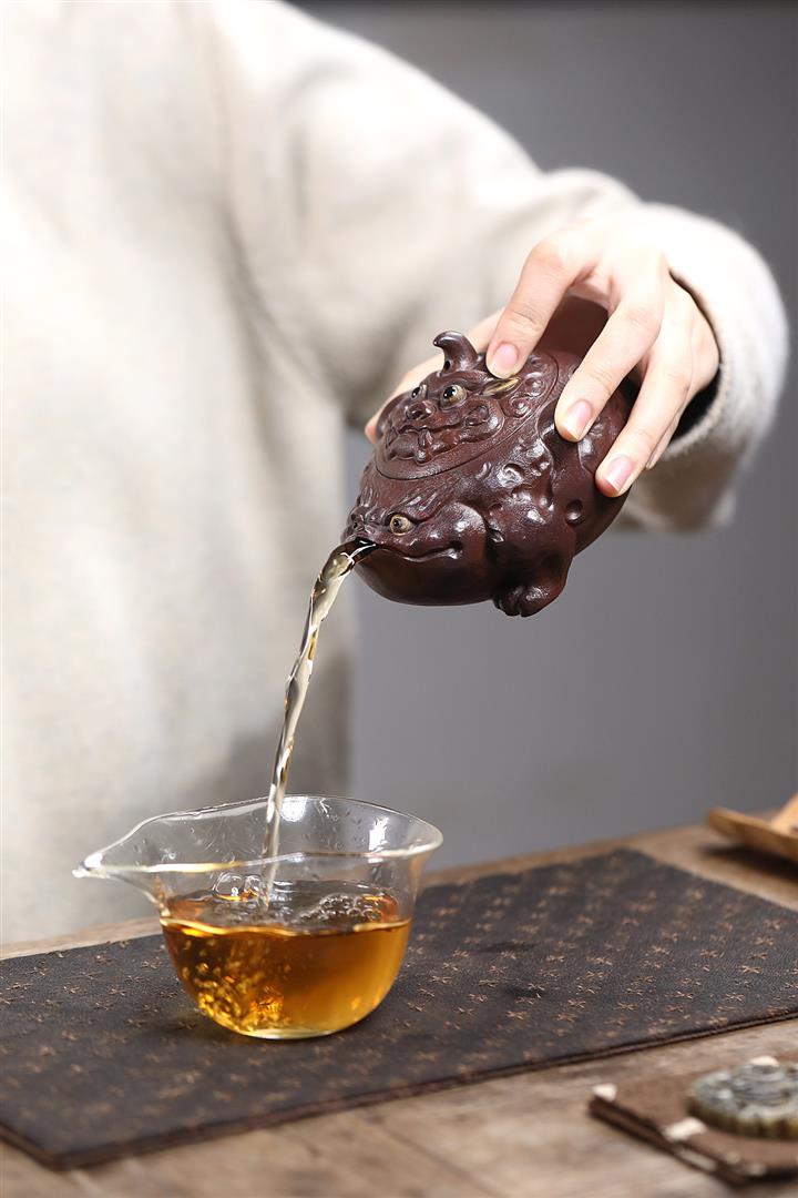 原礦紫泥手工製作金蟾手抓壺POT6571