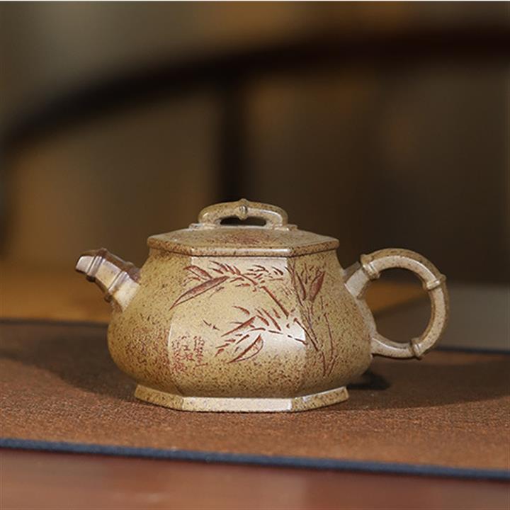 原礦雲霧沈香柴燒純手工刻繪六方竹節壺POT6581