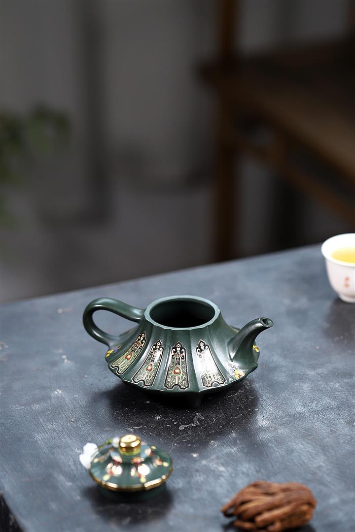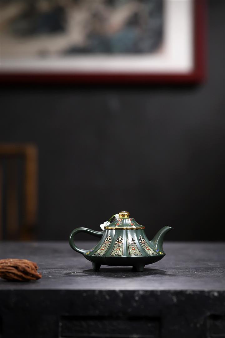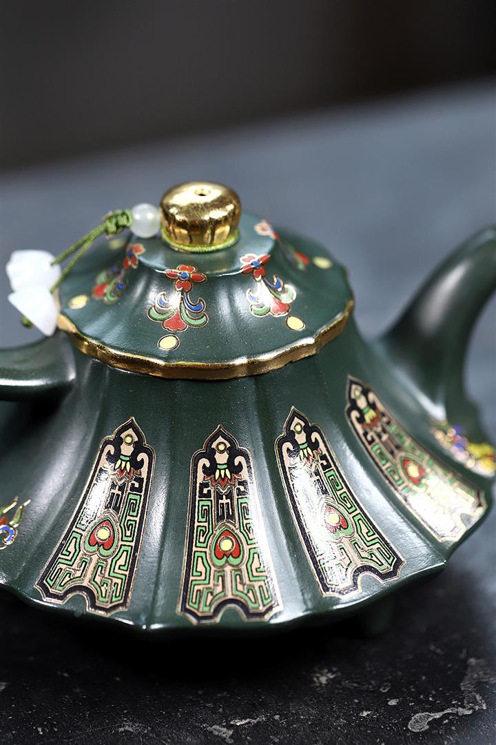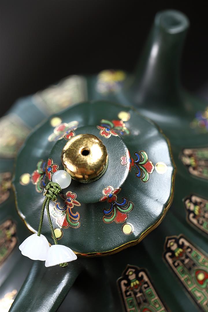 原礦綠泥手工琺瑯彩雲爐茶壺POT6572
