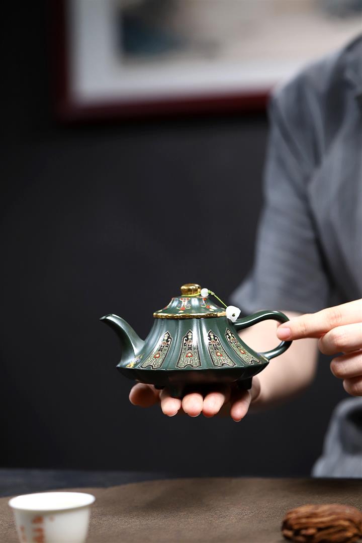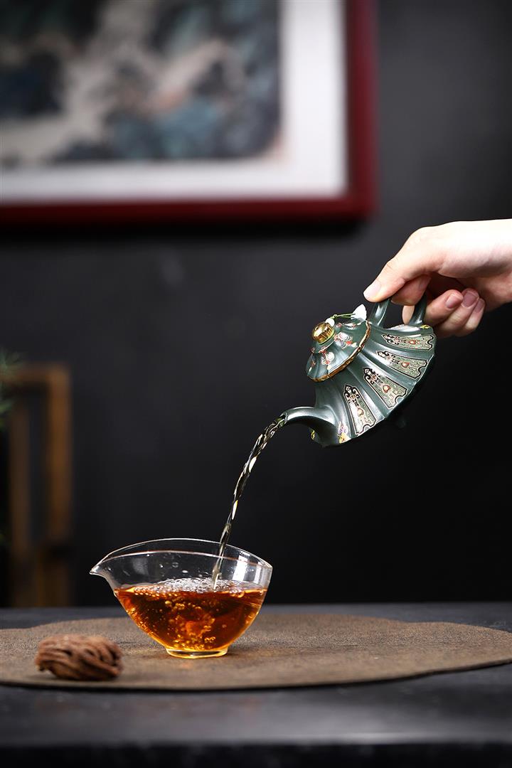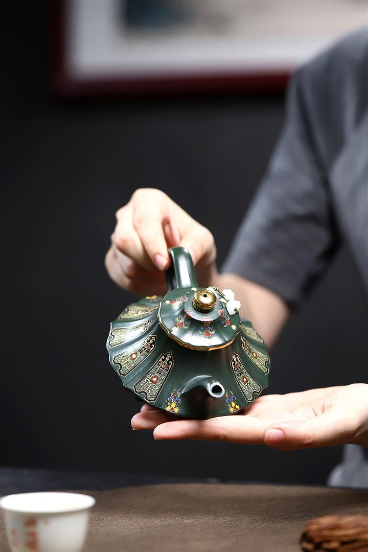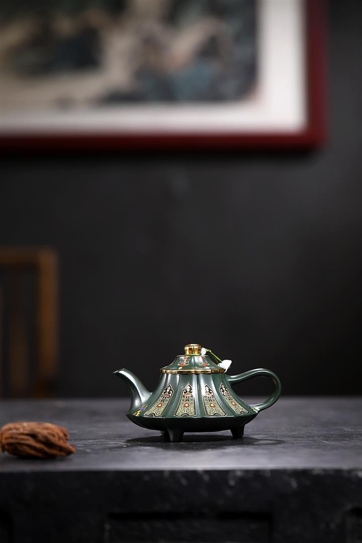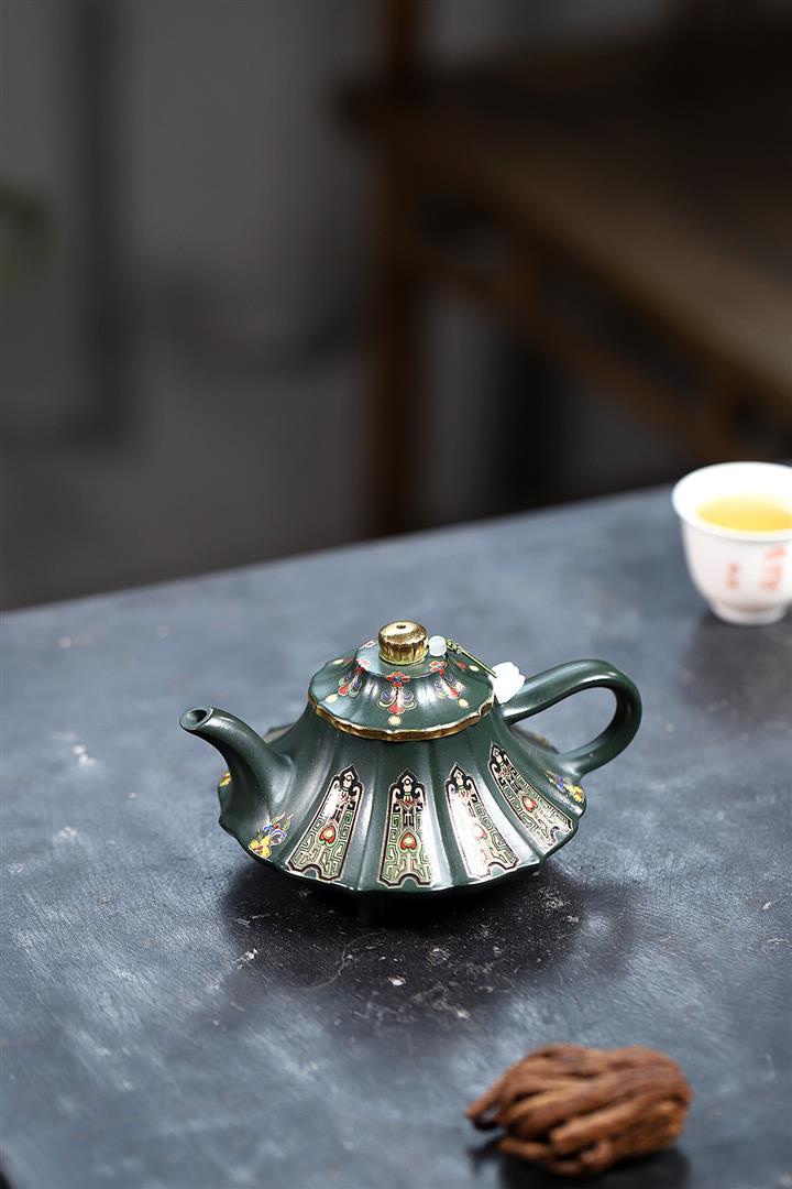 原礦綠泥手工琺瑯彩雲爐茶壺POT6572