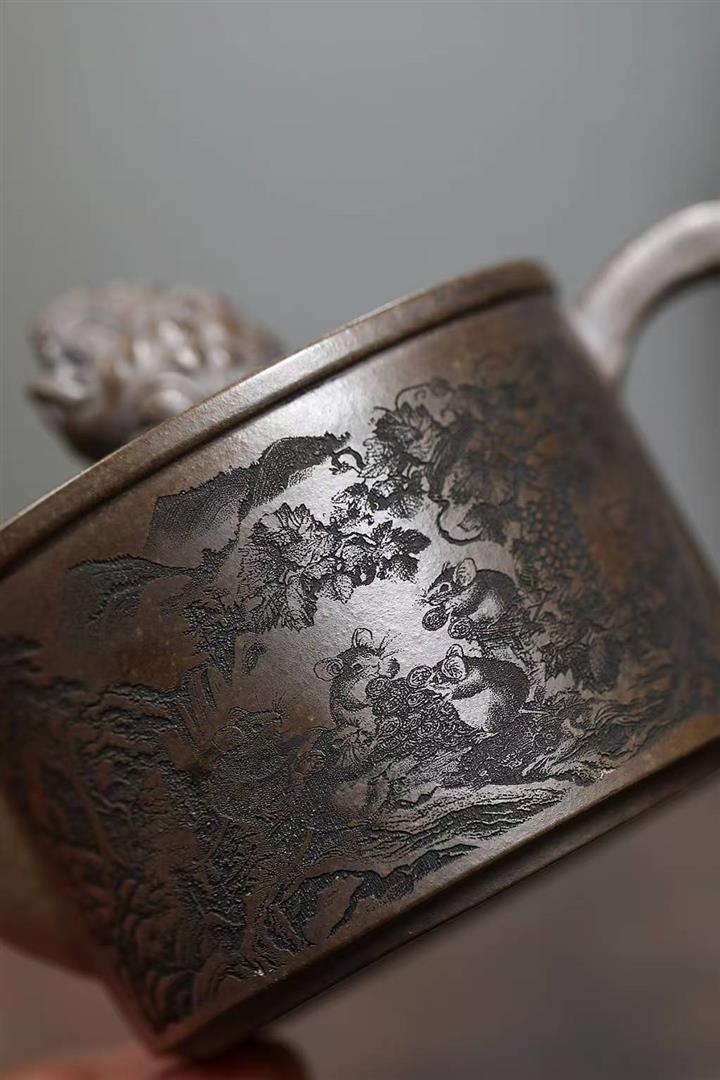 原礦陳腐古銅泥五鼠運財漢瓦壺POT6573