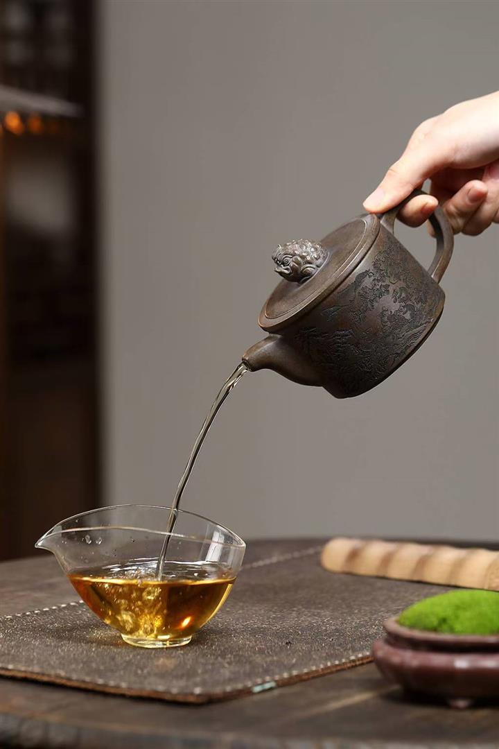 原礦雲霧沈香柴燒純手工刻繪六方漢雲壺POT6580