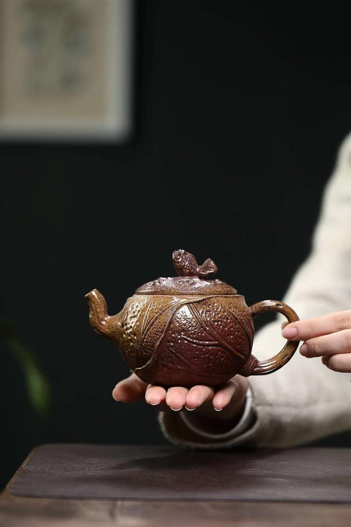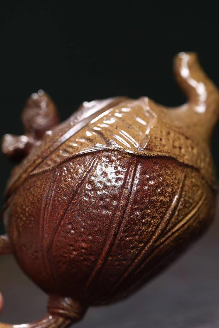 原礦高溫柴燒黃金段隱龍靈芝漢瓦壺POT6576