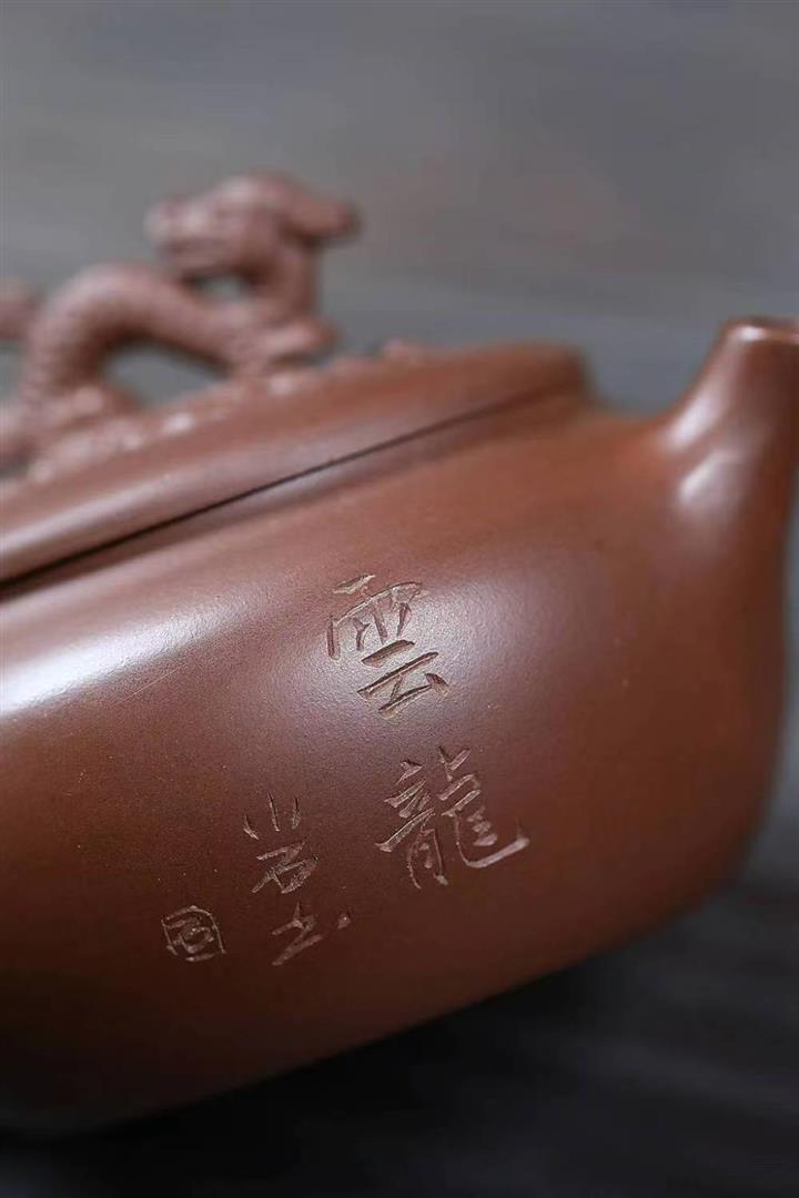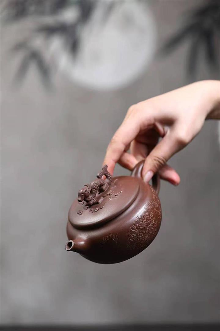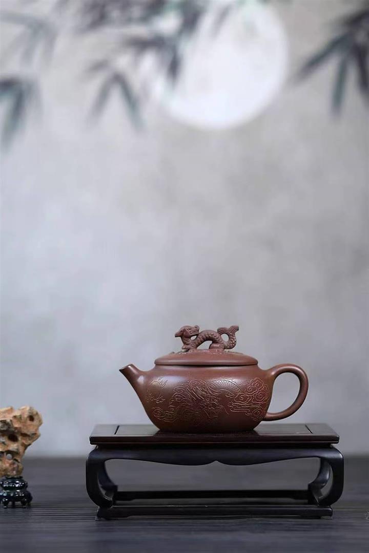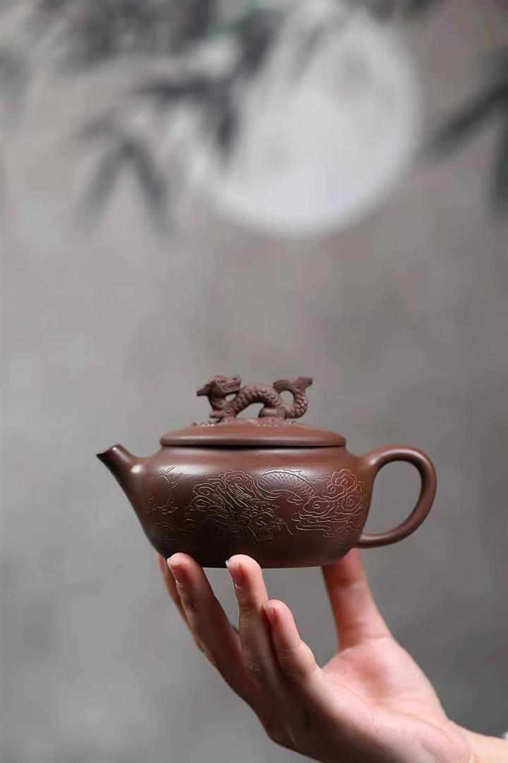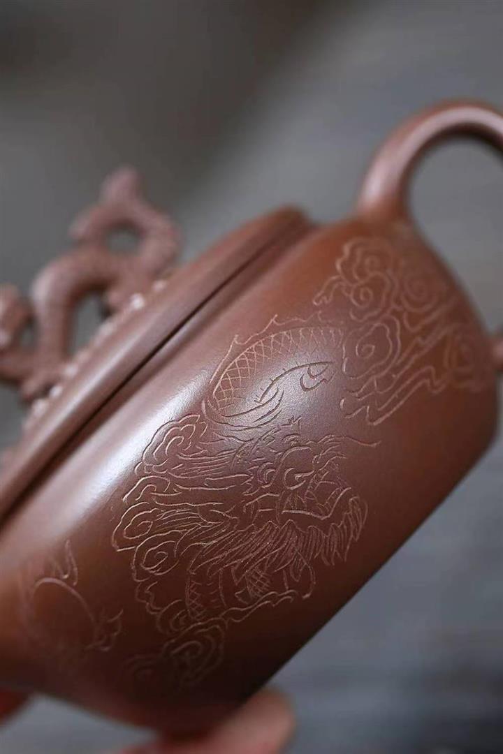 原礦陳腐紫泥刻繪雲龍德鐘壺POT6575